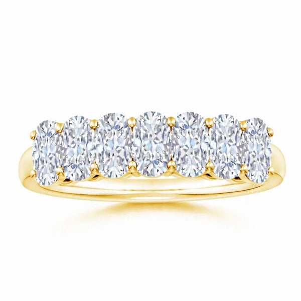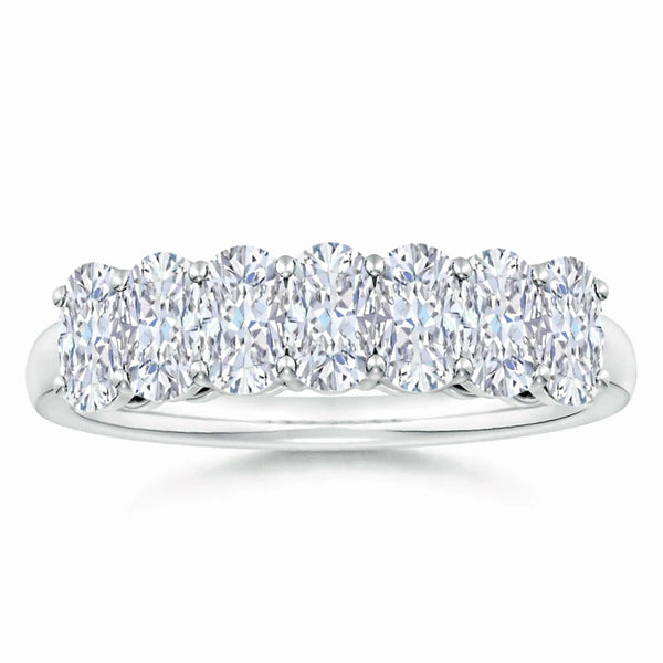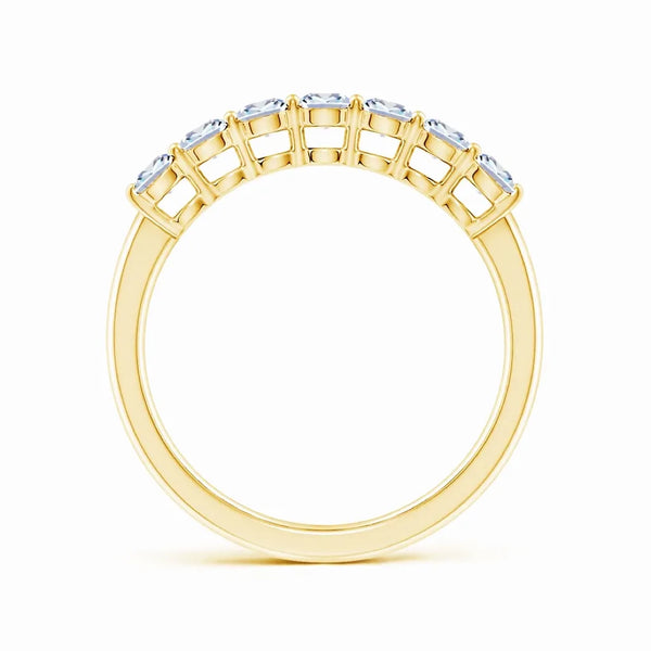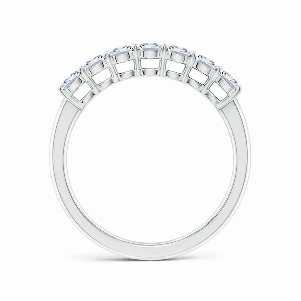 This Lab-Grown Prong-Set Cushion Rectangular Diamond Seven Stone Wedding Ring features seven meticulously arranged lab-grown diamonds, each securely held by prongs to maximize brilliance and durability. The cushion rectangular cut offers a modern yet timeless aesthetic, combining elegance with exceptional sparkle. Crafted for lasting beauty, this ring is an expert choice for those seeking sustainable luxury without compromising on quality or design. Ideal for weddings, it symbolizes enduring commitment with ethically sourced stones and precise craftsmanship.