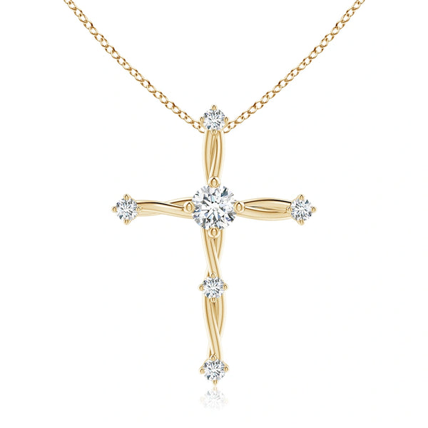 This Lab-Grown Diamond Braided Cross Pendant combines ethical craftsmanship with refined design. Featuring intricately braided metalwork, it showcases lab-grown diamonds that offer exceptional brilliance and clarity. Ideal for those seeking a meaningful symbol with sustainable luxury, this pendant delivers both elegance and responsible sourcing in one exquisite piece.