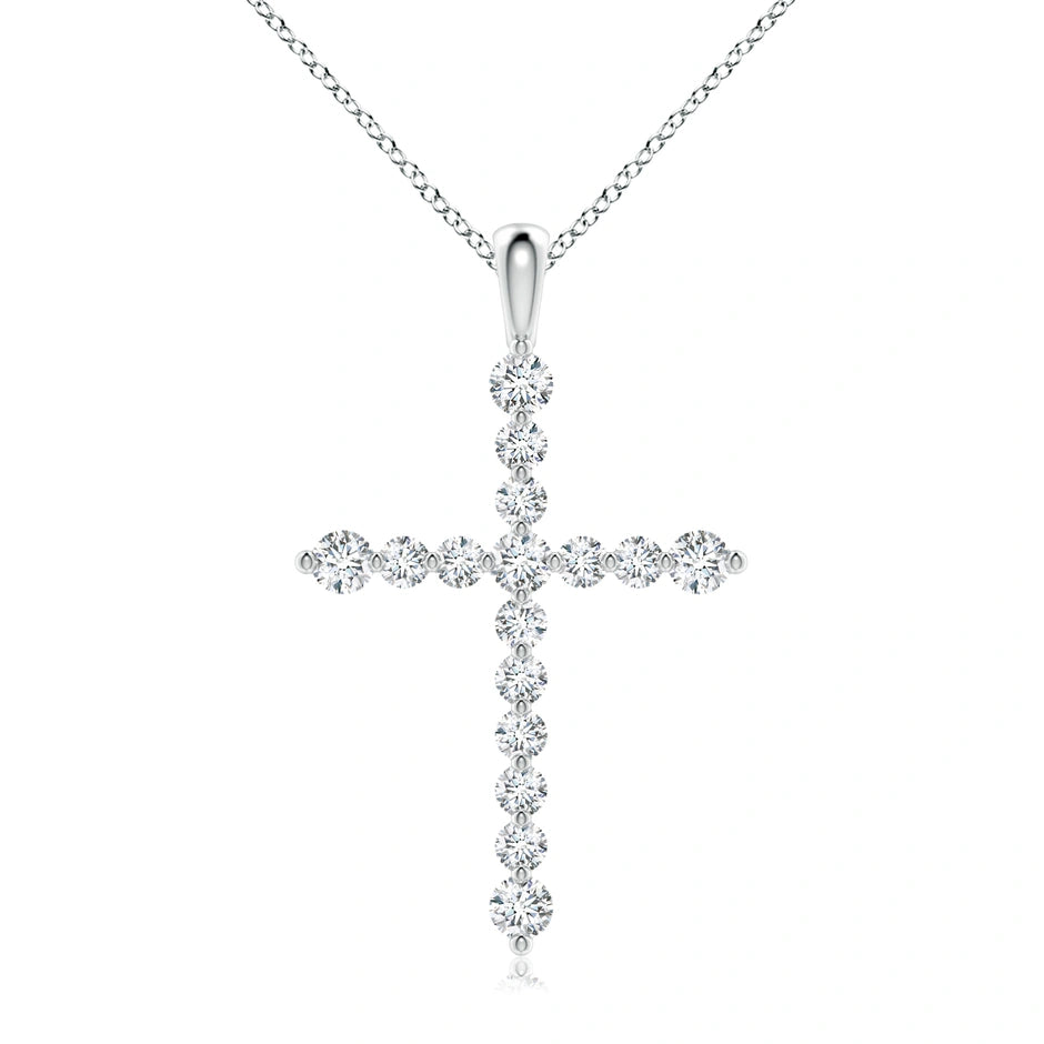 This Lab-Grown Floating Round Diamond Dotted Cross Pendant features expertly crafted round diamonds set to create a delicate, floating effect. The innovative design highlights the brilliance of each lab-grown diamond, offering an ethical and sustainable alternative without compromising on sparkle or quality. Perfect for those seeking a refined, contemporary expression of faith with exceptional craftsmanship and lasting beauty.
