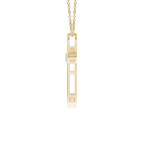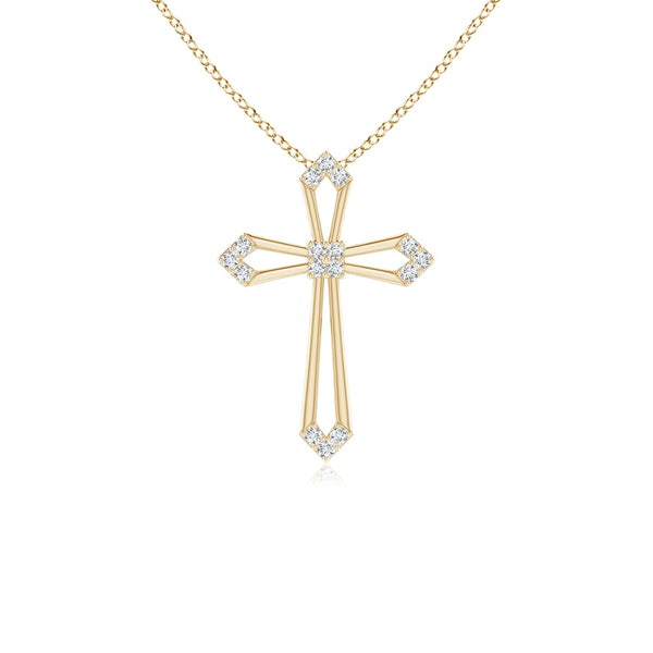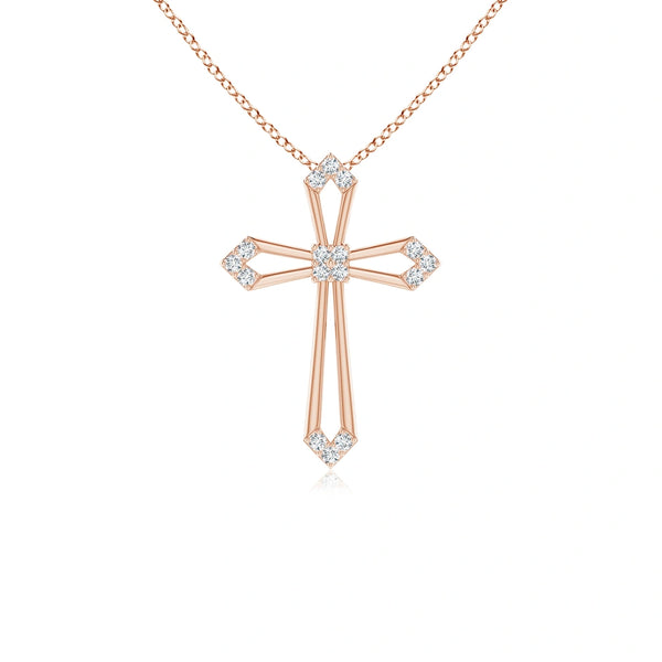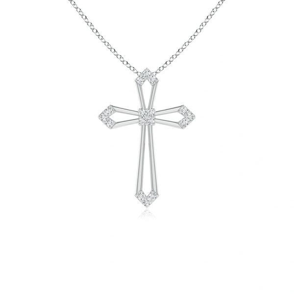 This lab-grown pointed open cross pendant features expertly crafted diamond accents that enhance its refined design. Combining ethical sourcing with precise craftsmanship, it offers a modern yet timeless symbol of faith. The open structure adds a contemporary edge, making it a versatile piece suitable for both everyday wear and special occasions.