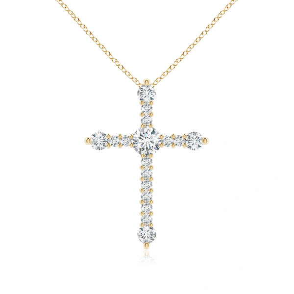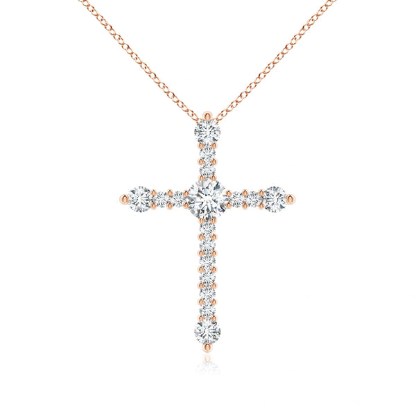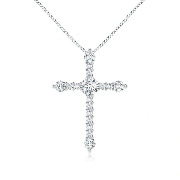 This Lab-Grown Prong-Set Diamond Budded Cross Pendant features ethically sourced diamonds expertly set in a classic prong design, enhancing brilliance and durability. Its refined craftsmanship ensures a timeless symbol of faith with modern sustainability, making it an elegant and responsible choice for everyday wear or special occasions.