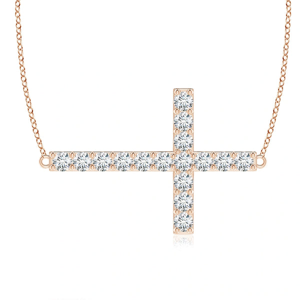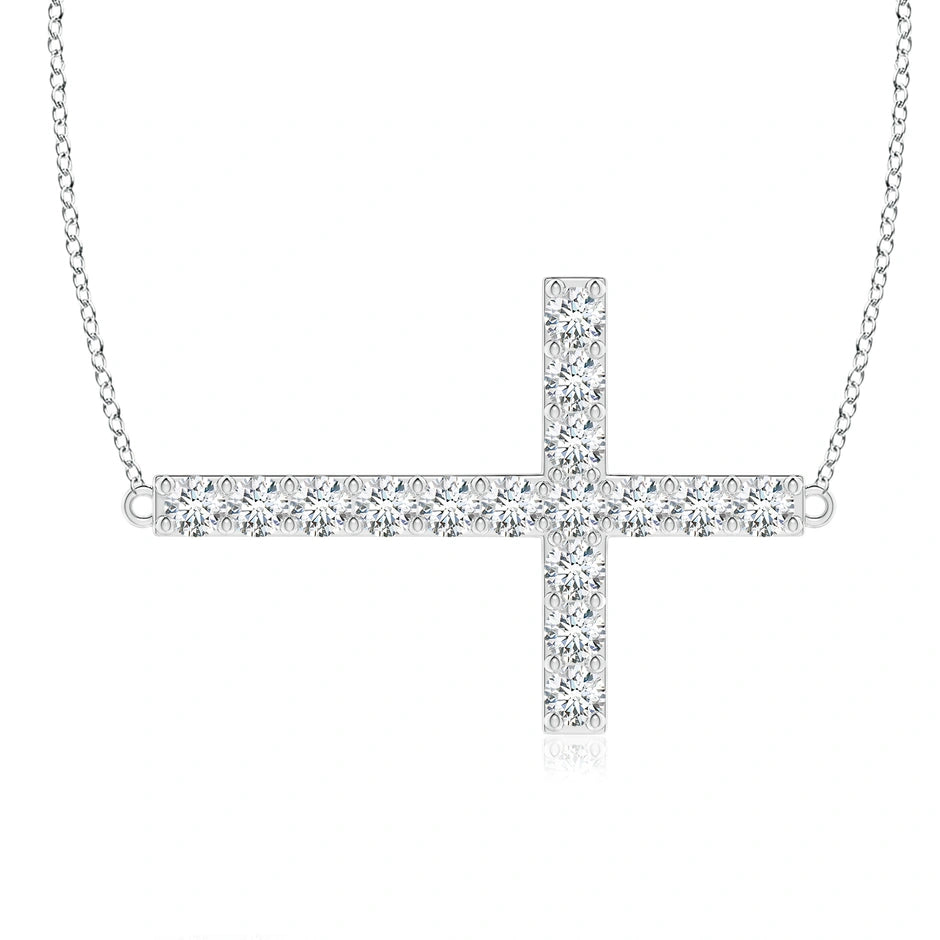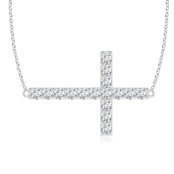 This Lab-Grown Prong-Set Diamond Horizontal Cross Pendant combines ethical craftsmanship with timeless design. Featuring precisely prong-set lab-grown diamonds, it offers exceptional brilliance and clarity while supporting sustainable practices. The horizontal cross layout provides a modern twist on a classic symbol, making it a refined choice for everyday wear or special occasions. Crafted to expert standards, this pendant balances elegance with responsible luxury.