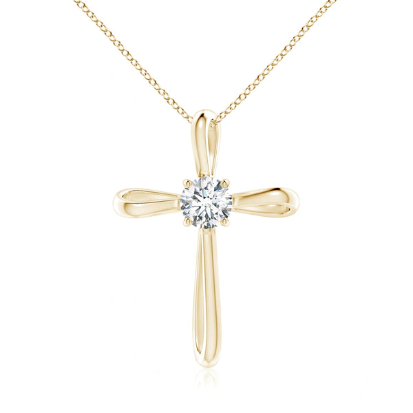This Prong-Set Round Lab-Grown Diamond Ribbon Twist Cross Pendant combines timeless symbolism with modern craftsmanship. Featuring expertly set round lab-grown diamonds, the pendant showcases a delicate ribbon twist design that adds depth and elegance. Crafted to highlight the brilliance of sustainable diamonds, it offers a refined accessory that balances ethical sourcing with sophisticated style, perfect for those seeking both meaning and quality in their jewelry.