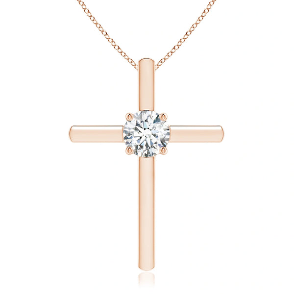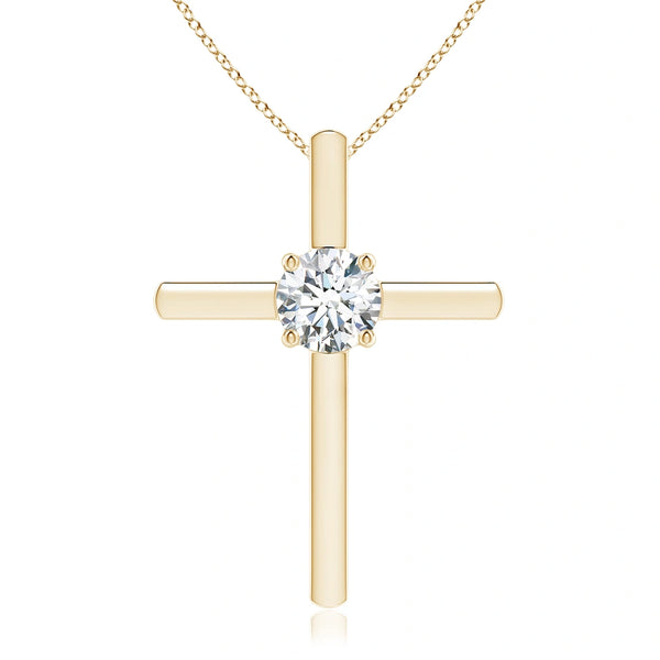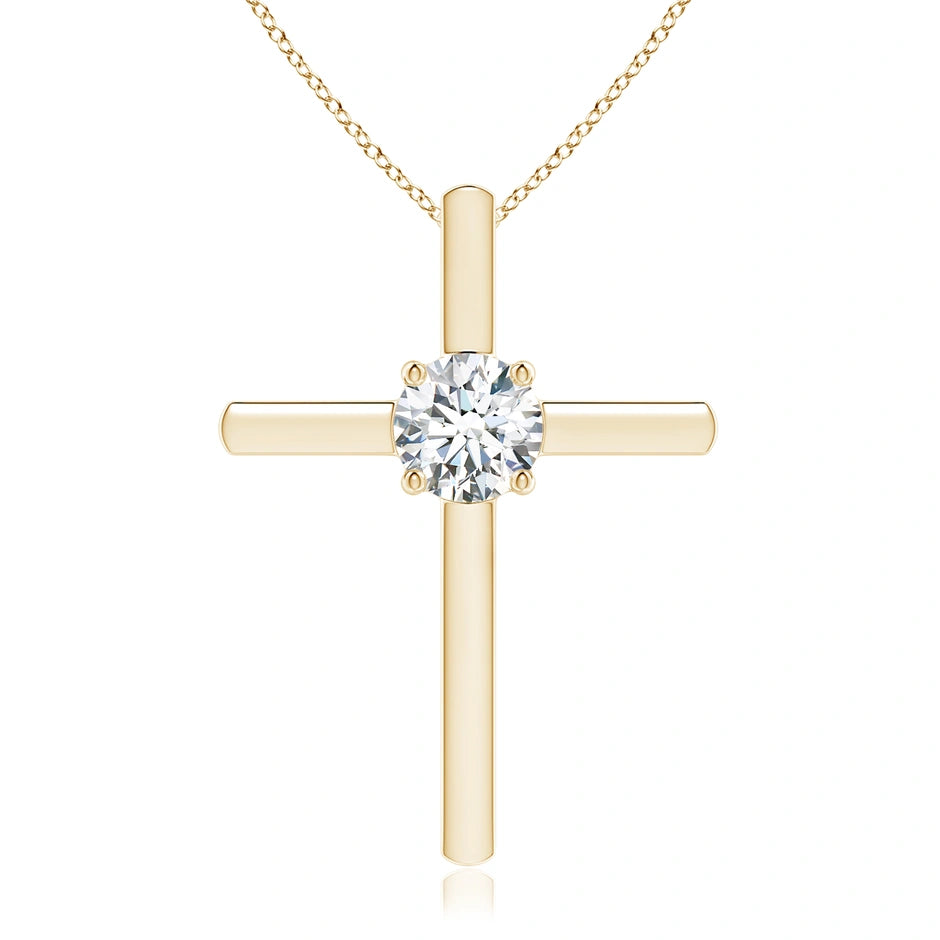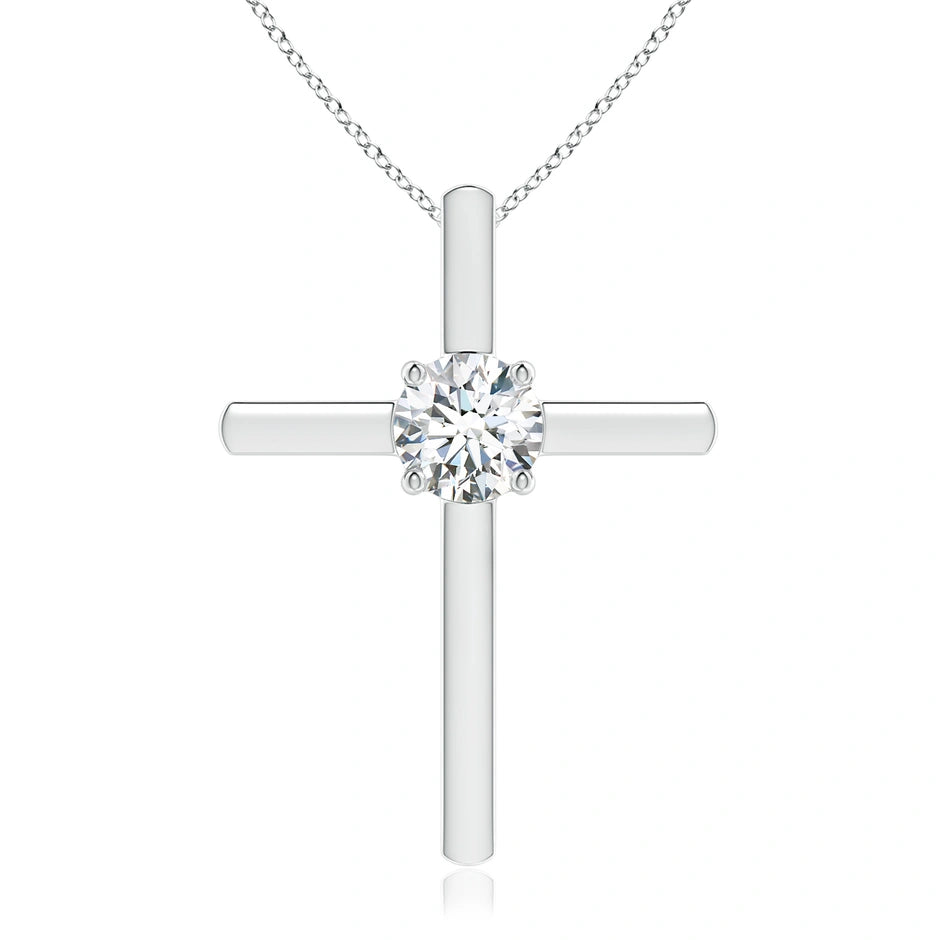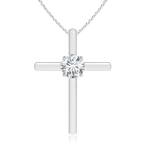This prong-set round lab-grown diamond solitaire cross pendant combines timeless symbolism with modern sustainability. Expertly crafted, it features a brilliant lab-grown diamond securely held in a classic prong setting, maximizing light reflection for exceptional sparkle. The pendant’s refined design offers a meaningful accessory that complements any style while supporting ethical jewelry choices. Ideal for those seeking elegance with a responsible origin.