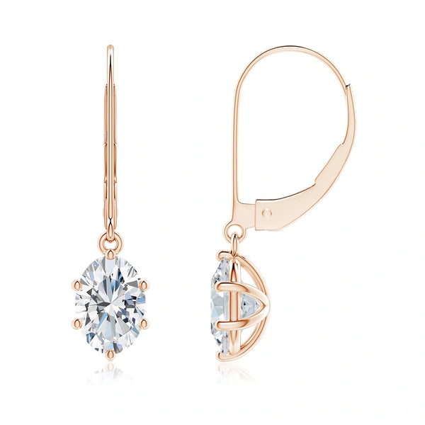 These Lab-Grown Oval Diamond Leverback Drop Earrings combine ethical craftsmanship with timeless elegance. Featuring precisely cut oval diamonds grown in controlled environments, they offer exceptional brilliance and clarity. The secure leverback design ensures comfortable wear while adding a sophisticated drop silhouette. Ideal for those seeking sustainable luxury without compromising on quality or style.