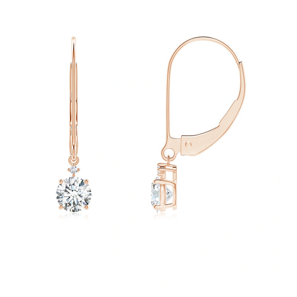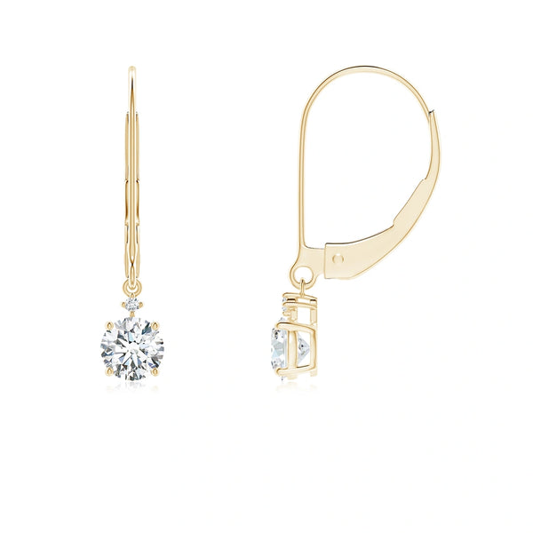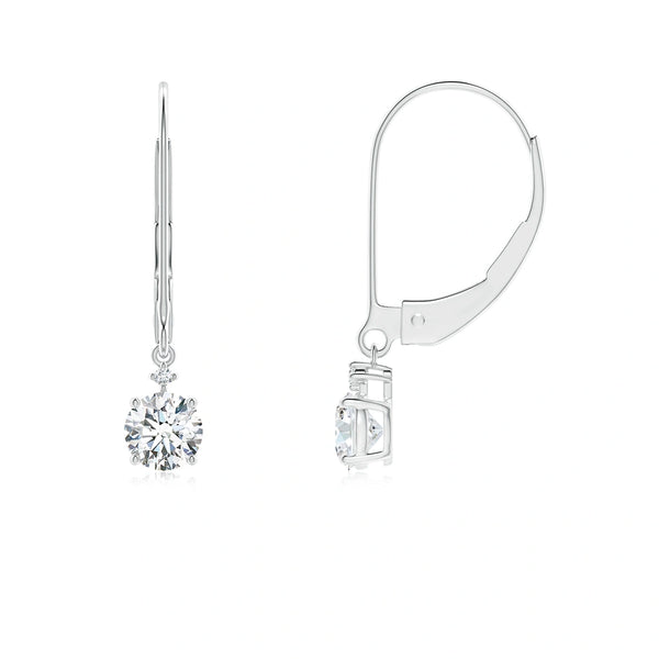 These prong-set round lab-grown diamond leverback dangle earrings combine ethical craftsmanship with timeless elegance. Each earring features a securely set round lab-grown diamond that offers brilliant sparkle and clarity. The leverback design ensures a comfortable and secure fit, making them ideal for daily wear or special occasions. Crafted with precision, these earrings provide a sophisticated look while supporting sustainable jewelry practices.