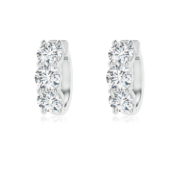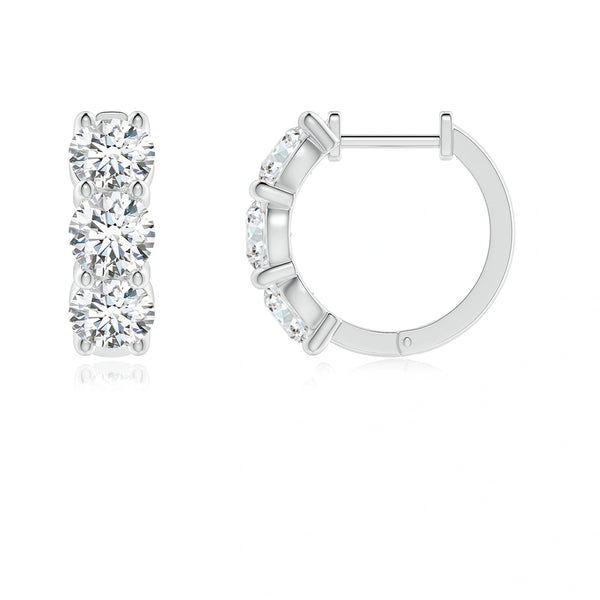 These Round Lab-Grown Diamond Three Stone Hoop Earrings combine sustainable luxury with timeless elegance. Featuring three precisely cut lab-grown diamonds set on a sleek hoop design, they offer brilliant sparkle and ethical appeal. Perfect for adding a refined touch to any outfit, these earrings balance modern craftsmanship with responsible sourcing, making them an expert choice for discerning jewelry lovers.