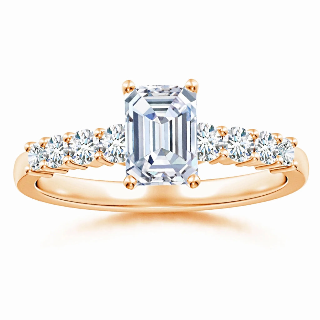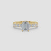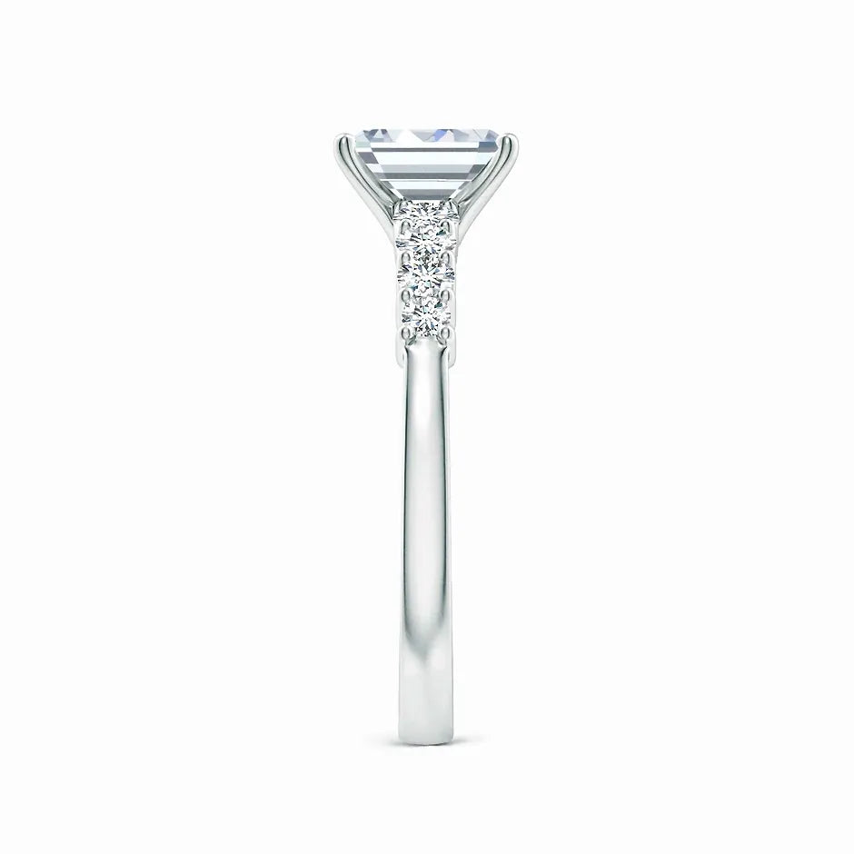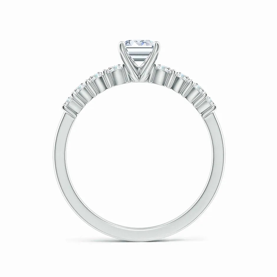 This Lab-Grown Solitaire Emerald-Cut Diamond Graduated Engagement Ring features a precisely cut emerald-shaped diamond that showcases exceptional clarity and brilliance. The graduated design enhances the ring’s elegance, creating a refined silhouette that highlights the central stone’s sophisticated geometry. Crafted with expert attention to detail, this ring offers a sustainable and ethically sourced alternative without compromising on quality or style, making it an ideal choice for a timeless engagement symbol.