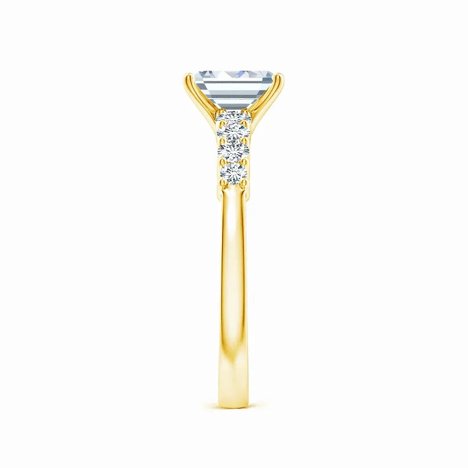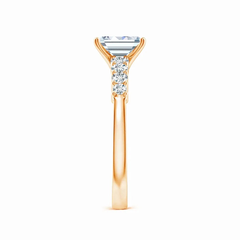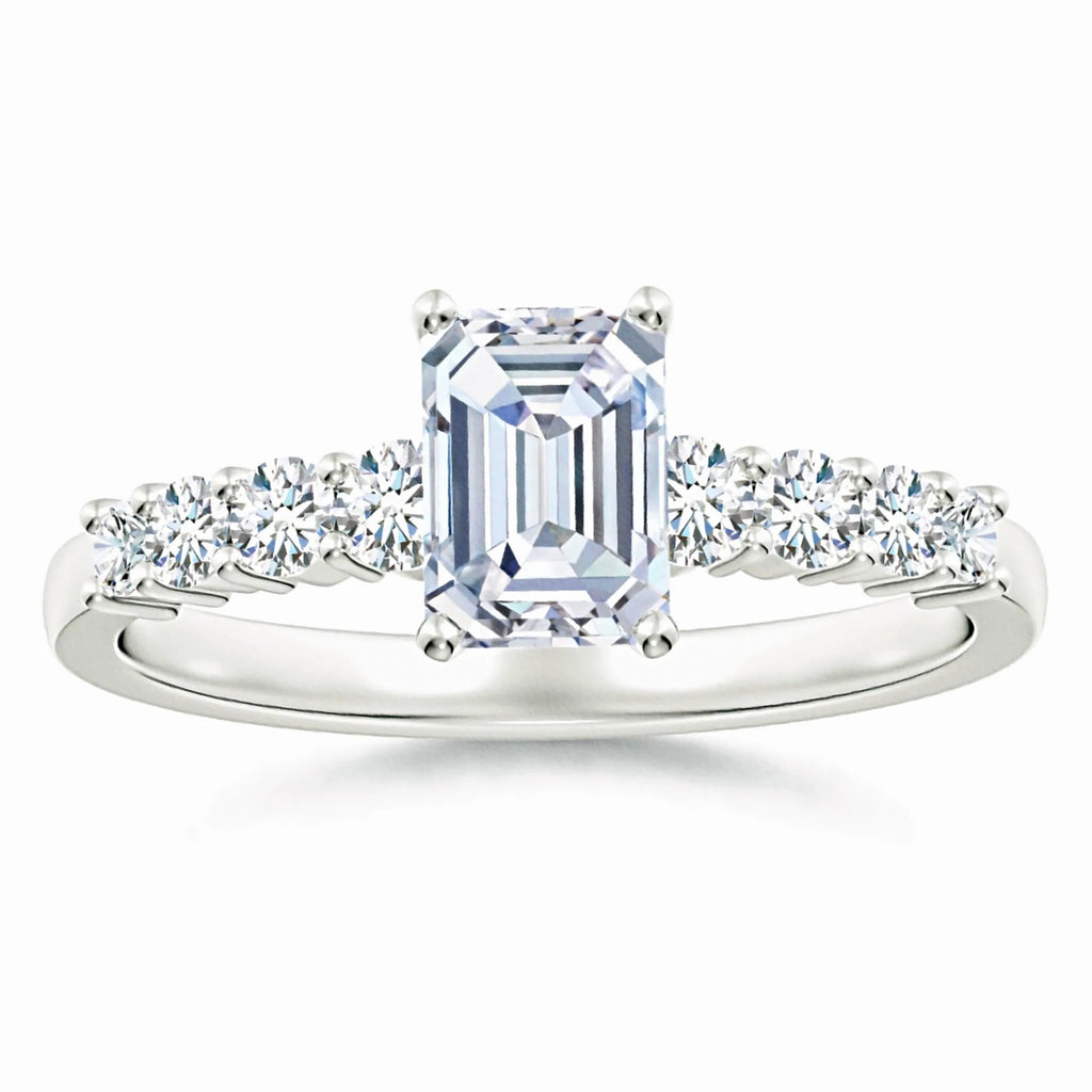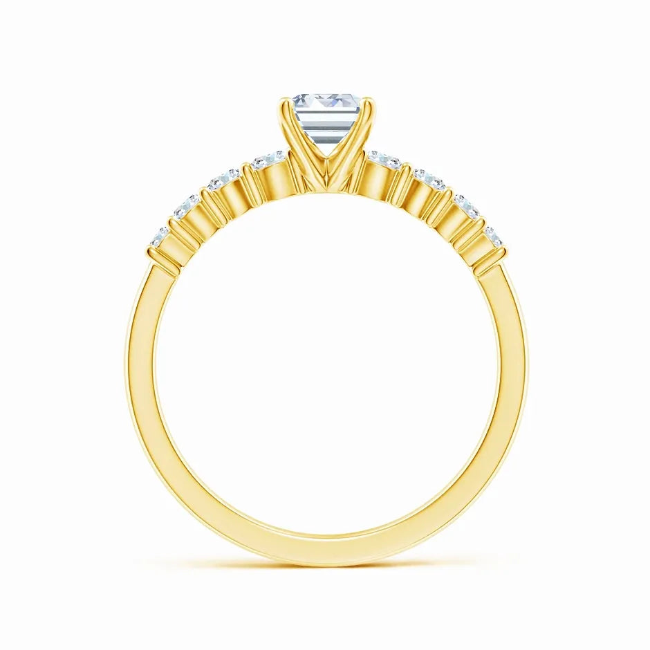 This Lab-Grown Solitaire Emerald-Cut Diamond Graduated Engagement Ring features a precisely cut emerald-shaped diamond that showcases exceptional clarity and brilliance. The graduated design enhances the ring’s elegance, creating a refined silhouette that highlights the central stone’s sophisticated geometry. Crafted with expert attention to detail, this ring offers a sustainable and ethically sourced alternative without compromising on quality or style, making it an ideal choice for a timeless engagement symbol.