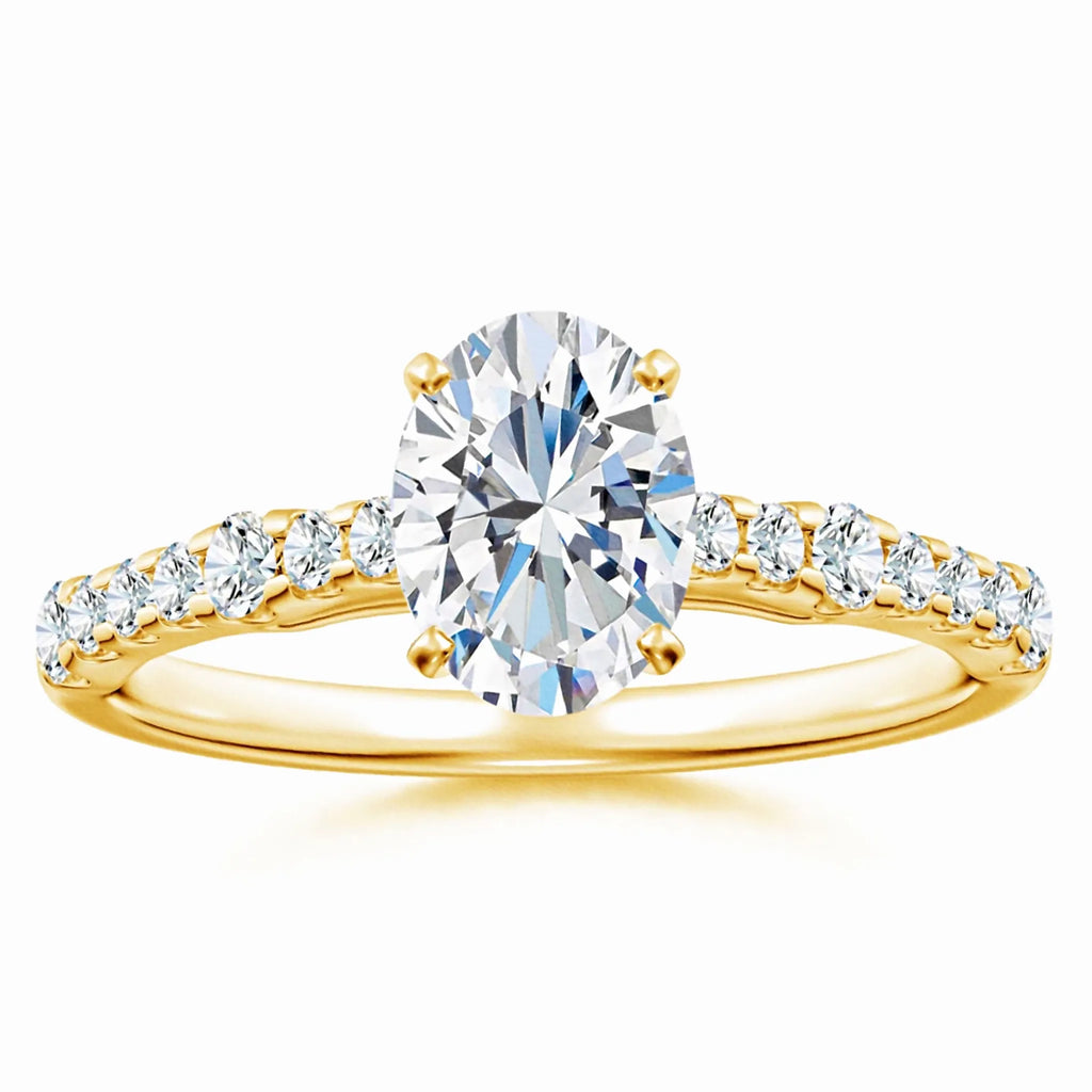 This Lab-Grown Solitaire Oval Diamond Engagement Ring features a precisely cut oval diamond, offering exceptional brilliance and clarity. Crafted with expert attention to detail, it provides an ethical and sustainable alternative to mined diamonds without compromising on quality or elegance. Perfect for those seeking a timeless symbol of commitment with a modern, responsible touch.