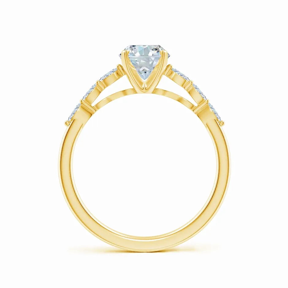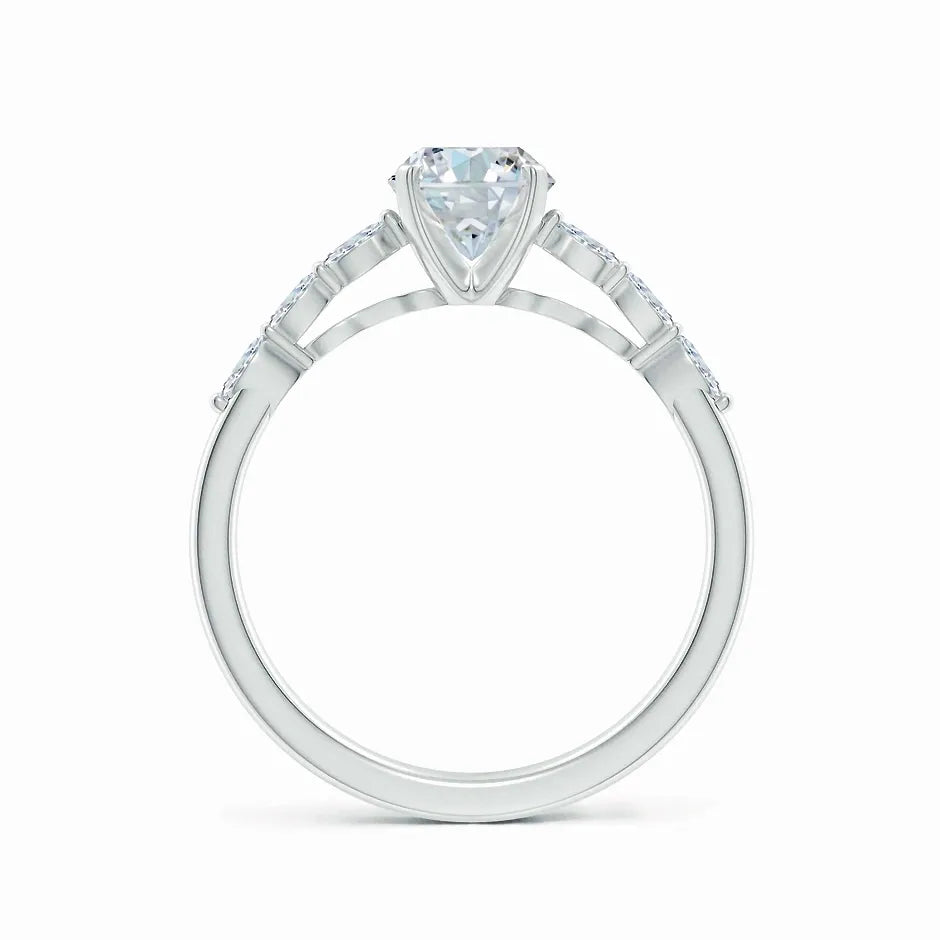 This engagement ring features a stunning oval lab-grown diamond as its centerpiece, complemented by elegant marquise-shaped accent stones. Crafted with precision, it offers a sustainable and ethical alternative to traditional diamonds without compromising on brilliance or quality. The unique combination of oval and marquise cuts enhances the ring’s sophistication, making it a timeless choice for those seeking both beauty and responsibility in their jewelry.