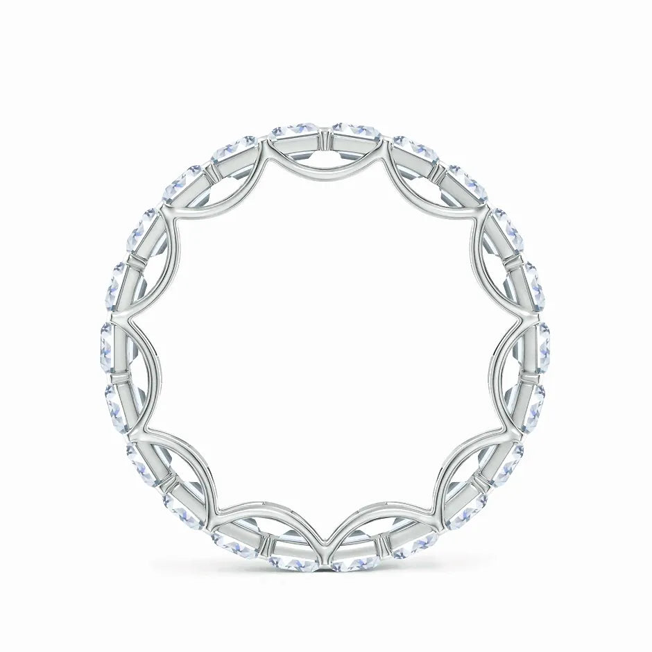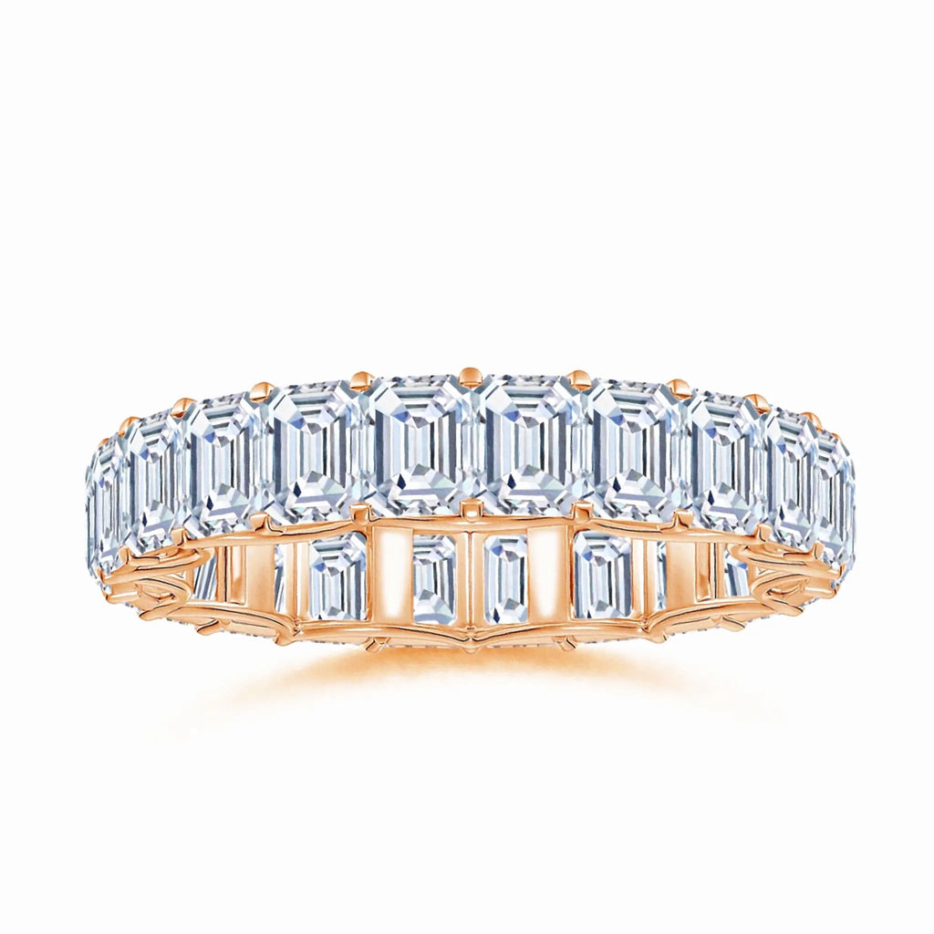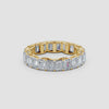 This lab-grown prong-set emerald-cut diamond eternity wedding ring showcases a continuous circle of precisely cut diamonds, offering exceptional brilliance and timeless elegance. Crafted with expert precision, the prong setting securely holds each emerald-cut diamond, maximizing light reflection for a stunning sparkle. Ideal for those seeking a sustainable and ethically sourced symbol of enduring love, this ring combines modern technology with classic design to create a sophisticated and lasting statement.