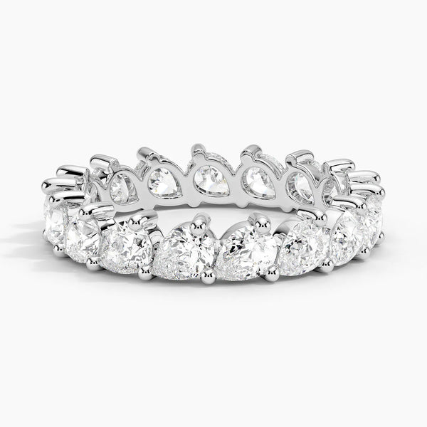 This Pear Eternity Lab Diamond Ring features a continuous row of precisely cut lab-grown diamonds set in a pear shape, symbolizing eternal elegance. Crafted with expert attention to detail, it offers exceptional brilliance and ethical sourcing. Ideal for those seeking a sophisticated, sustainable choice that combines timeless design with modern craftsmanship.