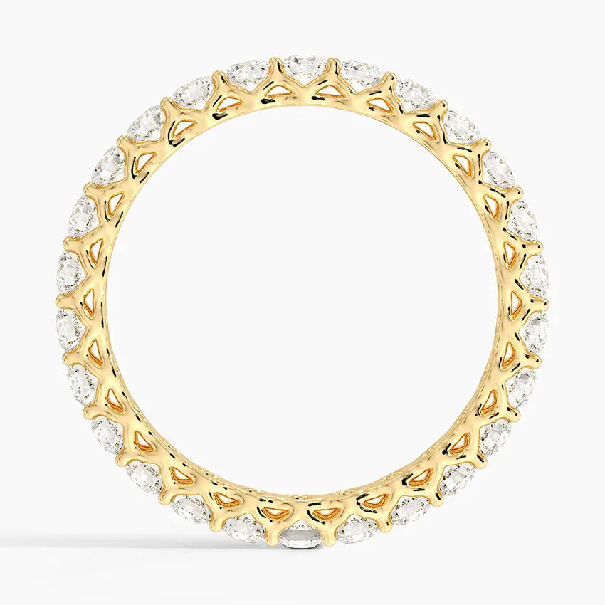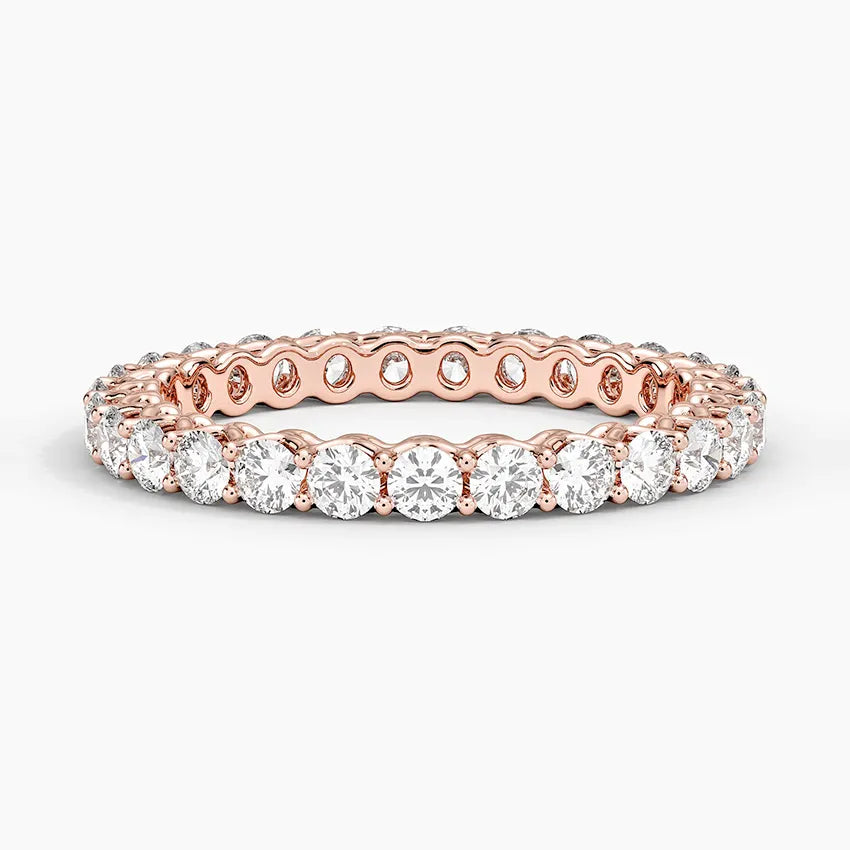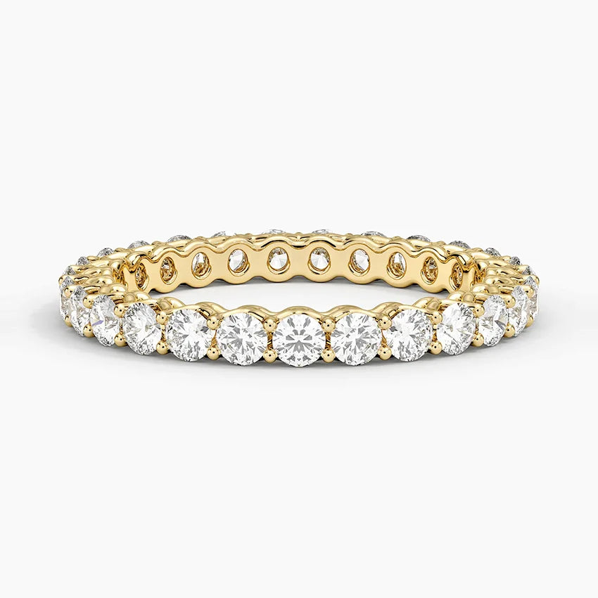 The Round Eternity Lab Diamond Ring features expertly crafted lab-grown diamonds arranged in a continuous circle, symbolizing everlasting commitment. Each diamond is selected for exceptional clarity and brilliance, offering a sustainable and ethically sourced alternative to traditional gemstones. This ring combines timeless elegance with modern innovation, making it an ideal choice for those seeking both quality and responsibility in fine jewelry.