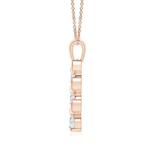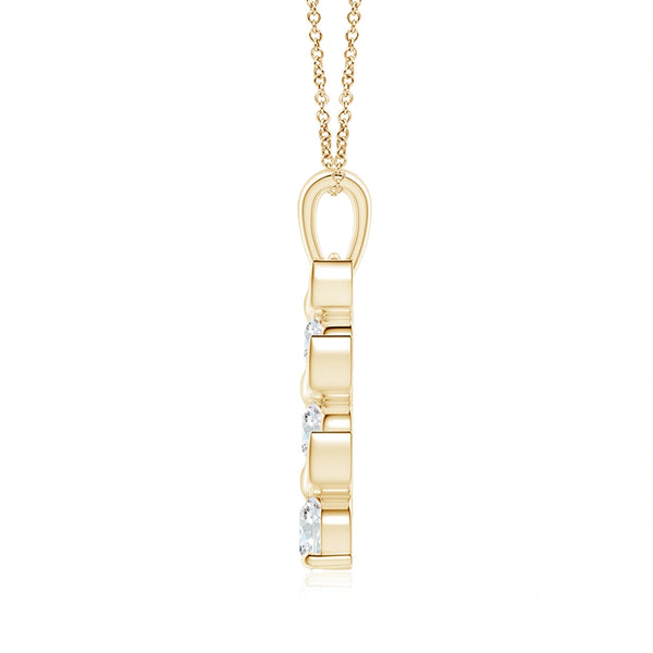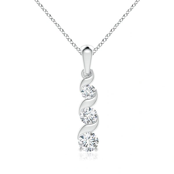 This Lab-Grown Channel-Set Round Diamond Three Stone Journey Pendant features expertly crafted round diamonds set securely in a channel setting, symbolizing a meaningful journey through its three-stone design. Combining sustainable lab-grown diamonds with precise craftsmanship, this pendant offers both ethical appeal and timeless elegance, making it a refined choice for those seeking quality and significance in their jewelry.