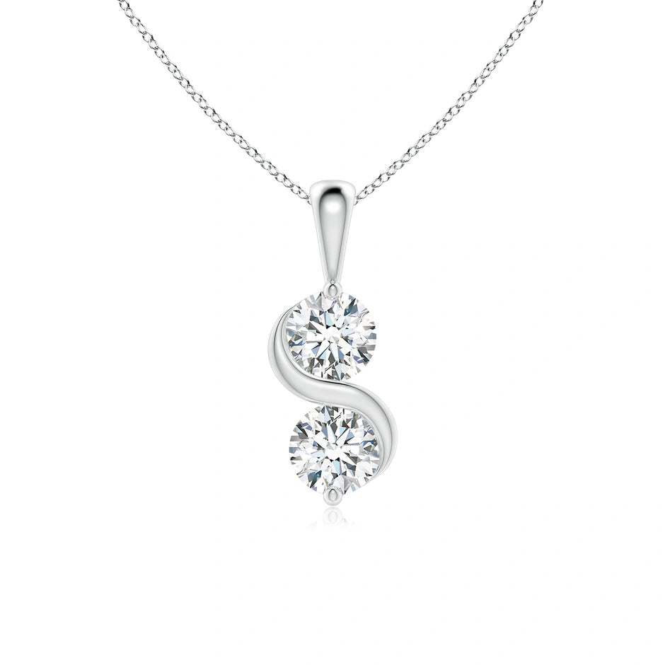 Elevate your elegance with the Lab-Grown Classic Two Stone Diamond Swirl Pendant. Featuring two ethically sourced lab-grown diamonds set in a graceful swirl design, this pendant combines timeless sophistication with modern sustainability. Expertly crafted to enhance brilliance and durability, it offers a refined sparkle that complements any attire, making it an ideal choice for both everyday wear and special occasions.