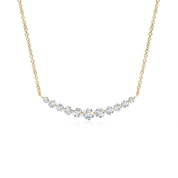 Elevate your style with this Lab-Grown Contemporary Round Diamond Journey Pendant Necklace. Featuring ethically sourced, precision-cut round diamonds, this pendant captures a modern aesthetic while symbolizing personal growth and milestones. Expertly crafted for lasting brilliance, it offers a sustainable alternative without compromising on luxury or sparkle. Perfect for those who appreciate refined design and conscious elegance.