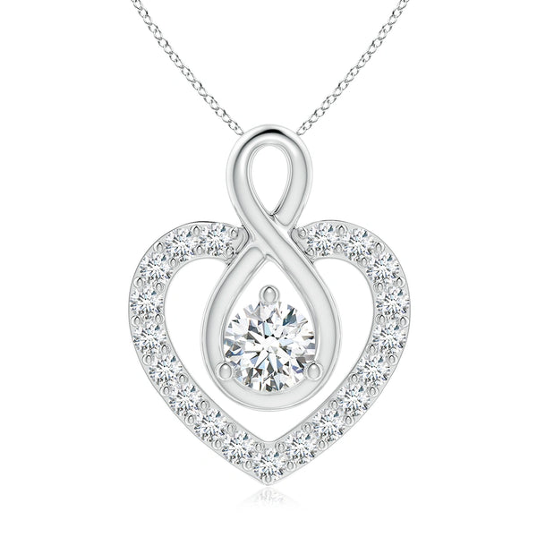 This Lab-Grown Diamond Heart Pendant with Infinity Loop combines sustainable craftsmanship with timeless elegance. Featuring a precisely cut lab-grown diamond set within a delicate heart shape, it is intertwined with an infinity loop symbolizing eternal love and commitment. Expertly designed for durability and brilliance, this pendant offers a refined accessory that complements both everyday wear and special occasions. Its ethical origin ensures a responsible choice without compromising on quality or sparkle.