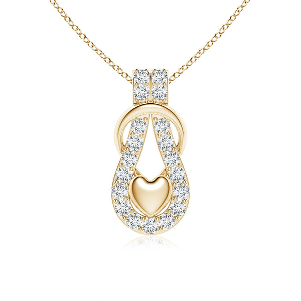 This Lab-Grown Diamond Infinity Knot Pendant with Puffed Heart combines timeless symbolism with sustainable craftsmanship. Featuring a meticulously crafted infinity knot intertwined with a softly puffed heart, it showcases lab-grown diamonds that offer exceptional brilliance and ethical appeal. Perfect for expressing enduring love and commitment, this pendant balances elegance with conscious luxury, making it a refined choice for those who value both beauty and responsibility.