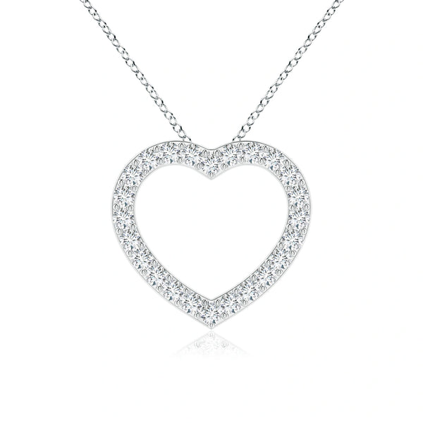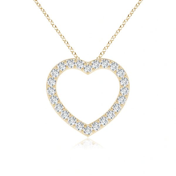 This Lab-Grown Prong-Set Diamond Open Heart Pendant features ethically sourced diamonds expertly set in a delicate open heart design. Crafted with precision, it offers a sustainable alternative to mined diamonds without compromising brilliance or quality. Ideal for those seeking a refined, modern symbol of love and commitment, this pendant combines elegance with responsible craftsmanship.