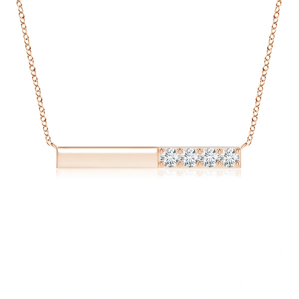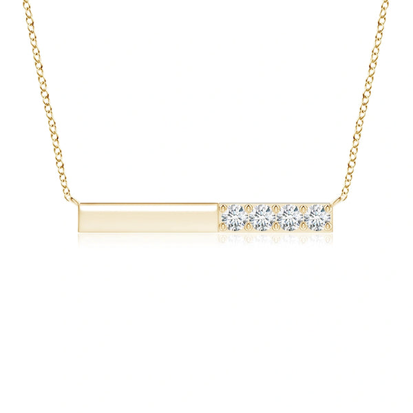 Elevate your jewelry collection with this Lab-Grown Prong-Set Round Diamond Bar Necklace. Featuring ethically sourced, lab-grown diamonds expertly prong-set along a sleek bar pendant, this necklace offers brilliant sparkle with sustainable craftsmanship. Its minimalist design ensures versatility, making it suitable for both everyday wear and special occasions. Crafted to highlight the clarity and fire of each diamond, this piece combines modern elegance with responsible luxury.