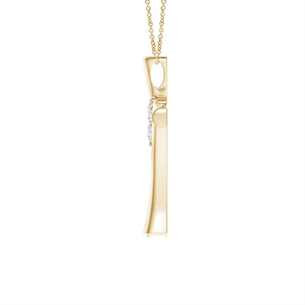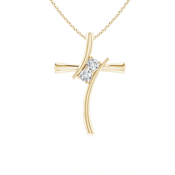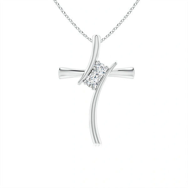 This Lab-Grown Two Stone Diamond Bypass Cross Pendant features two ethically created diamonds set in a sleek bypass design, symbolizing faith with modern elegance. Crafted with precision, it offers the brilliance and clarity of natural diamonds while supporting sustainable practices. Ideal for those seeking a meaningful accessory that combines timeless symbolism with contemporary craftsmanship.