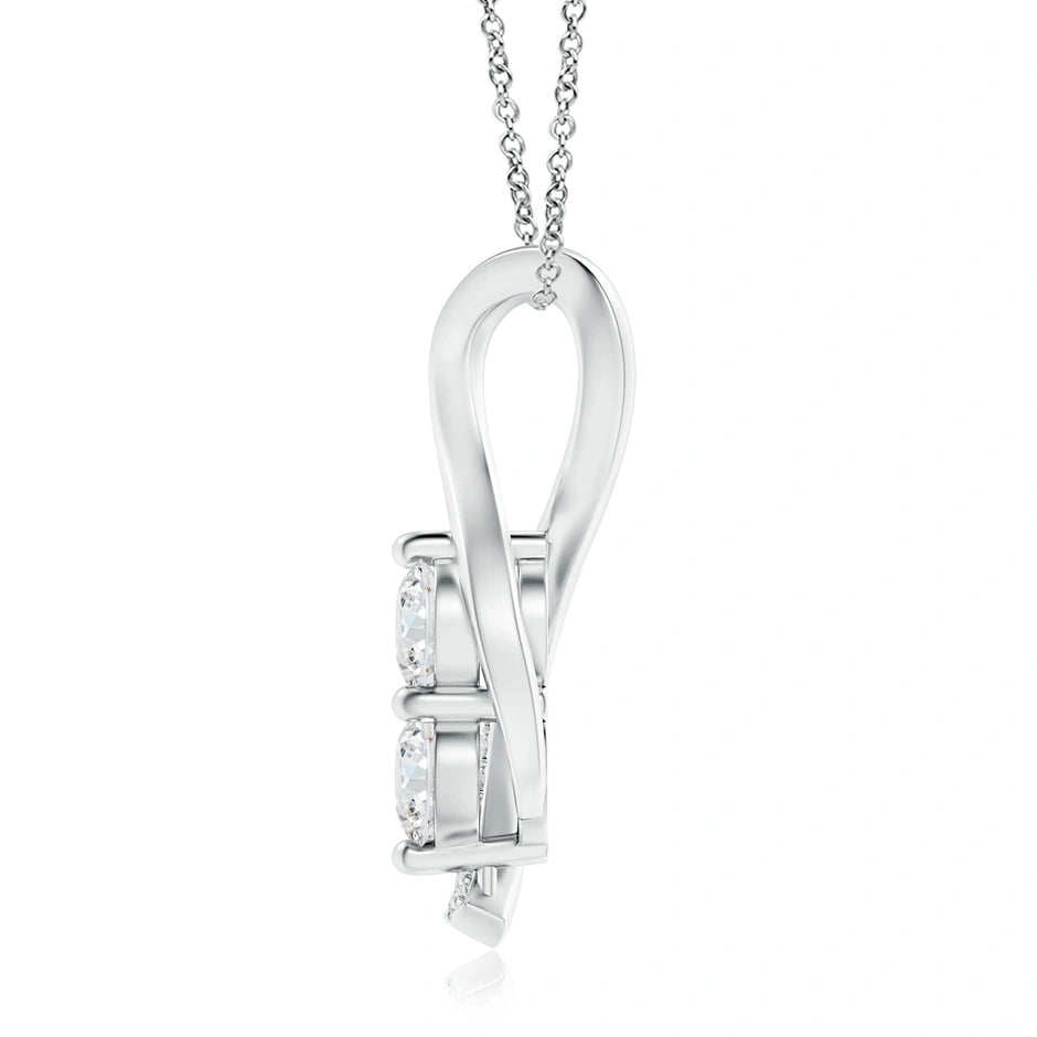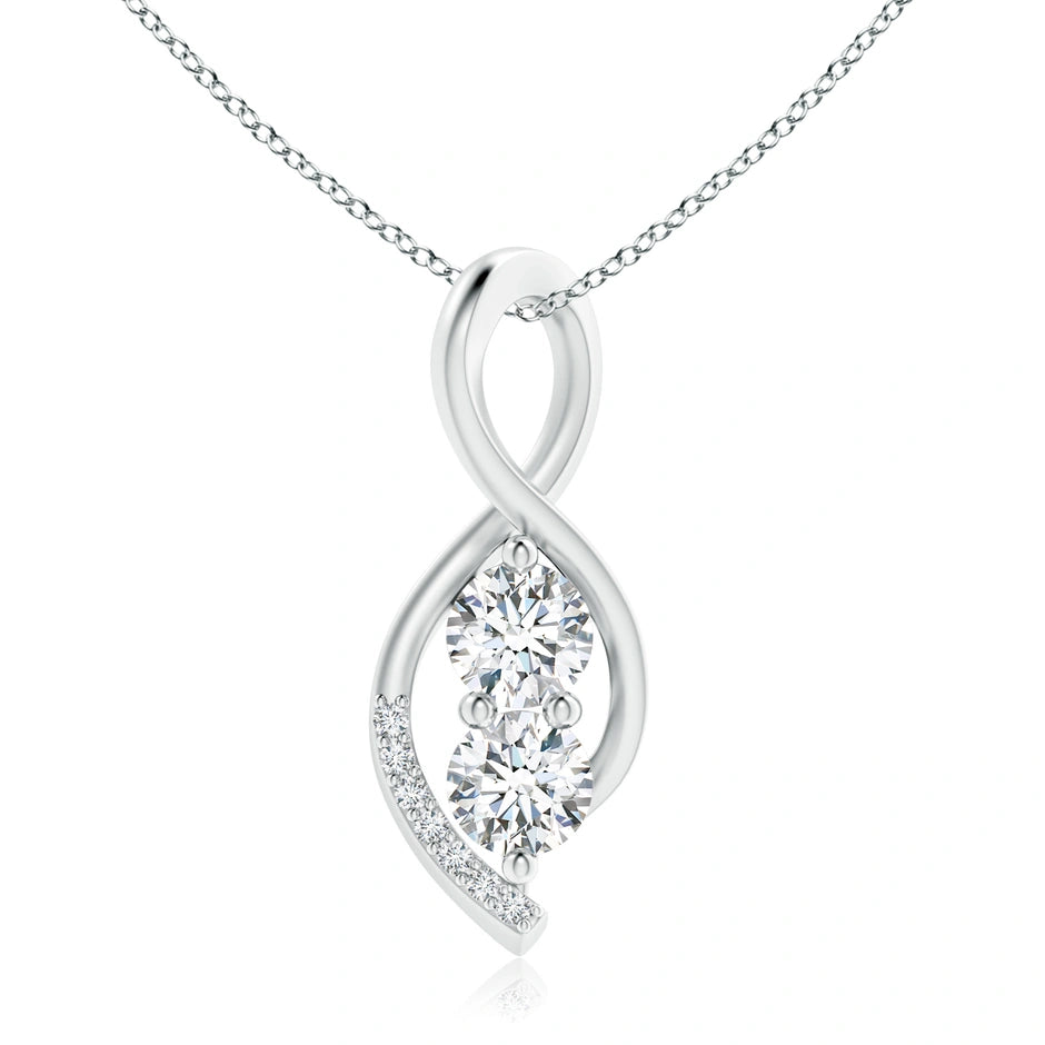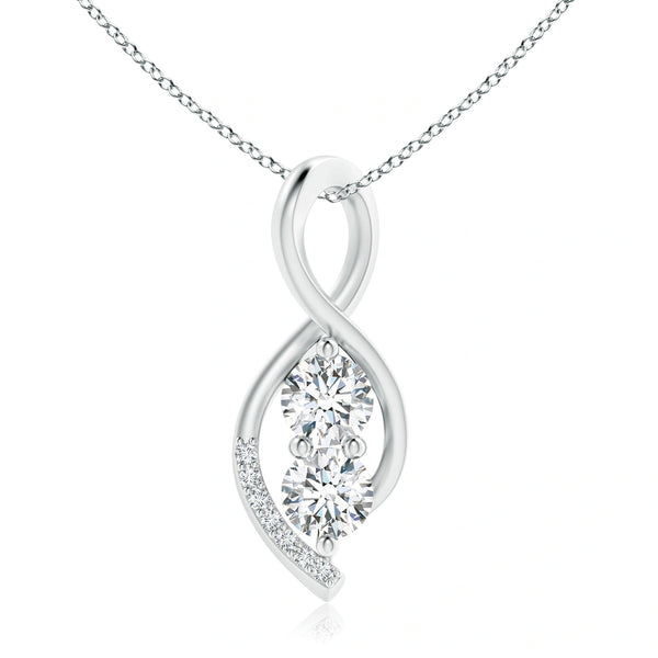 Elevate your elegance with this Lab-Grown Two Stone Diamond Infinity Twist Pendant. Featuring two ethically crafted lab-grown diamonds set in a graceful infinity twist design, this pendant symbolizes timeless commitment and endless beauty. Expertly crafted for brilliance and durability, it offers a sustainable alternative without compromising on sparkle or quality. Perfect for daily wear or special occasions, it adds a refined touch to any ensemble.