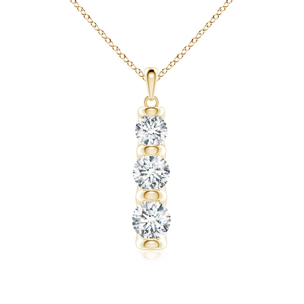 This Three Stone Round Lab-Grown Diamond Journey Pendant features three meticulously crafted round lab-grown diamonds, symbolizing a meaningful journey or milestone. Expertly designed to highlight the brilliance and clarity of each stone, this pendant offers a sustainable and ethical alternative to traditional diamonds. Its elegant simplicity makes it a versatile piece, perfect for daily wear or special occasions, while reflecting a commitment to responsible luxury.