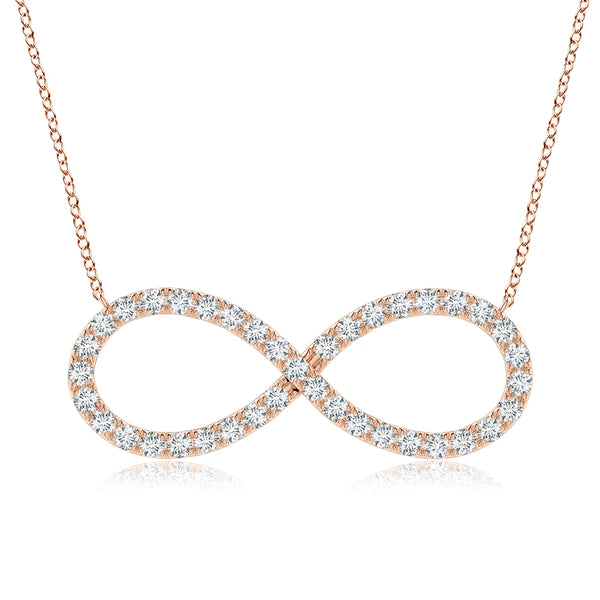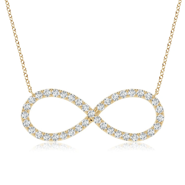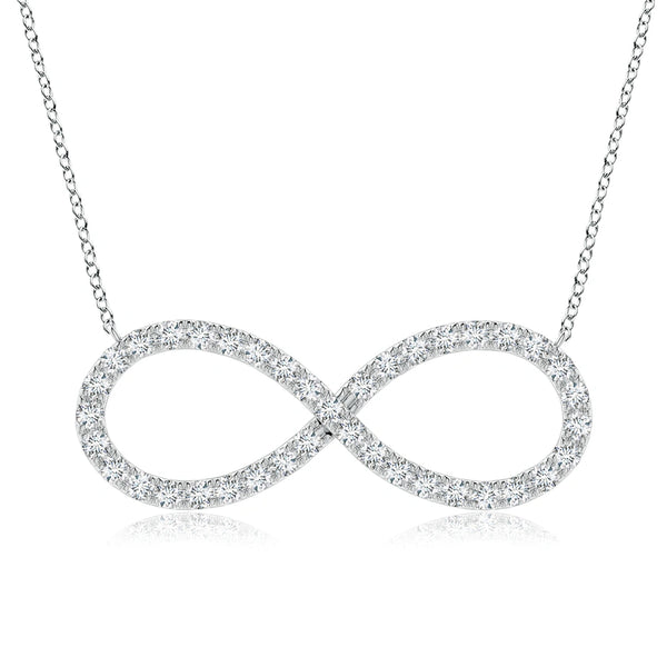 Elevate your collection with the U-Pave Set Lab-Grown Diamond Sideways Infinity Pendant Necklace. Expertly crafted, this necklace features a delicate sideways infinity symbol adorned with brilliant lab-grown diamonds, offering sustainable luxury without compromising on sparkle. Its refined design symbolizes eternal connection, making it a meaningful accessory for everyday elegance or special occasions. The pendant’s precise pavé setting ensures maximum light reflection, enhancing the diamonds’ radiance while maintaining a sleek, modern silhouette. Perfect for those who value ethical craftsmanship paired with timeless style.