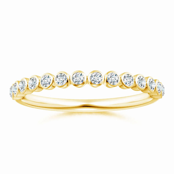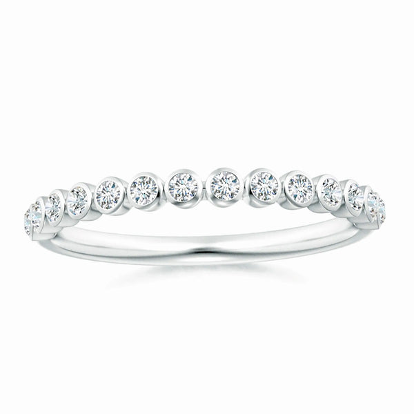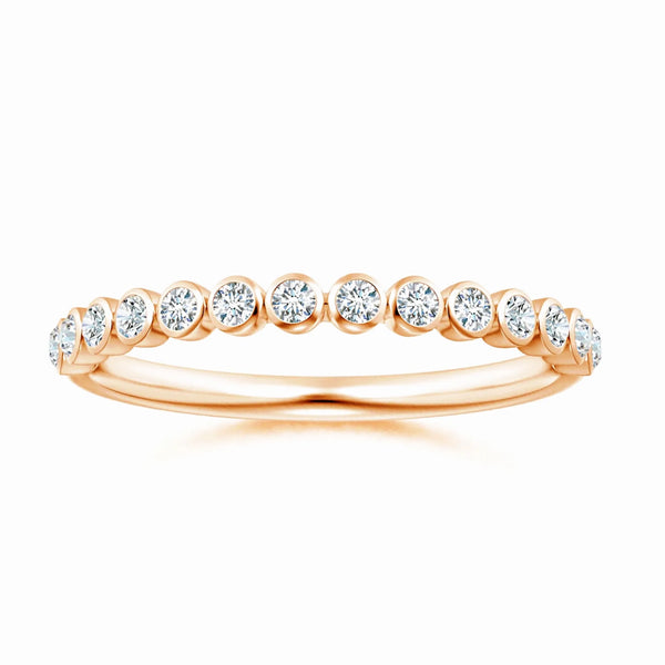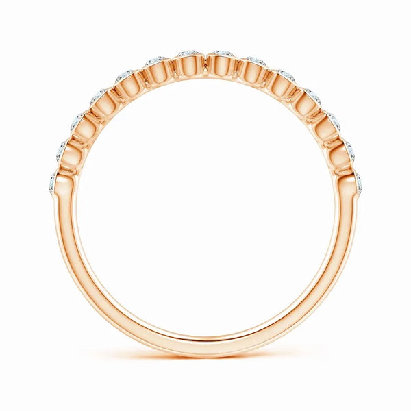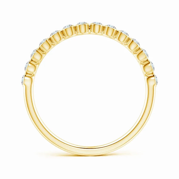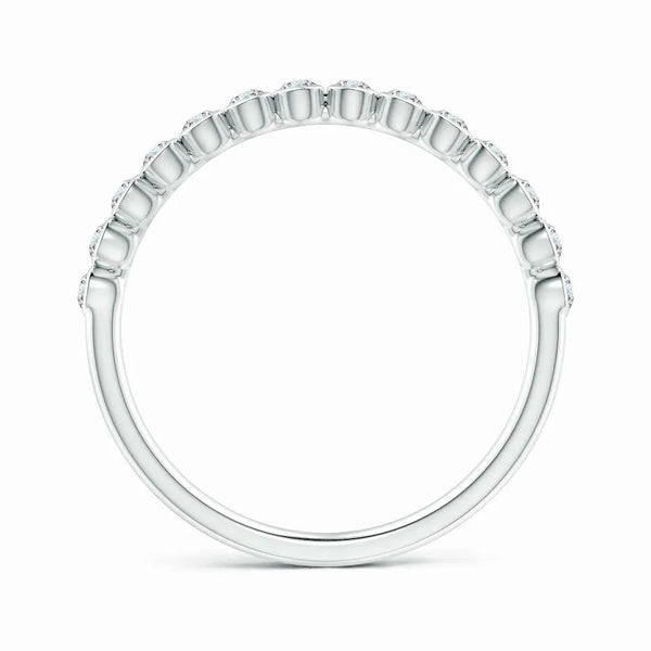 This Lab-Grown Bezel-Set Diamond Half Eternity Wedding Ring combines sustainable craftsmanship with timeless elegance. Featuring precisely bezel-set lab-grown diamonds along half the band, it offers a secure setting that enhances each stone’s brilliance. Ideal for those seeking an ethical yet luxurious symbol of commitment, this ring balances durability with refined design, making it a sophisticated choice for a wedding band.