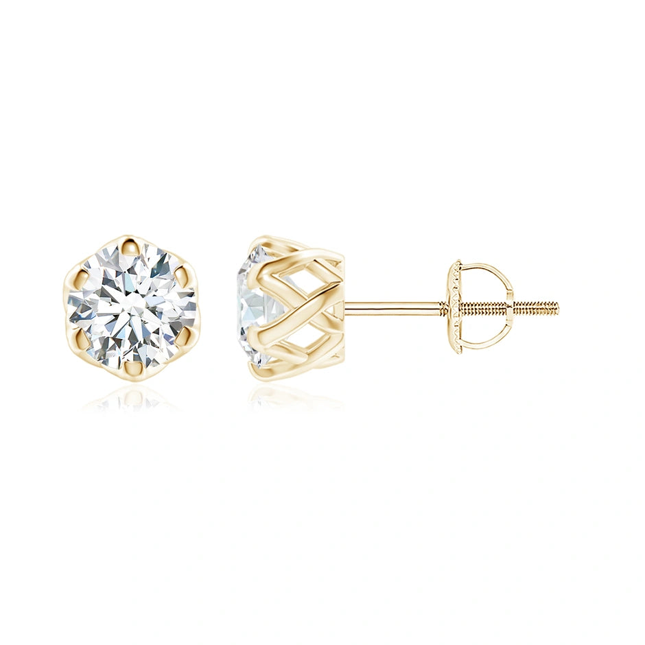 These Lab-Grown Six Prong-Set Diamond Solitaire Filigree Stud Earrings combine precision craftsmanship with sustainable luxury. Each earring features a brilliant lab-grown diamond securely held by a classic six-prong setting, enhancing its sparkle and durability. The intricate filigree design adds a delicate, vintage-inspired touch, making these studs a refined choice for everyday elegance or special occasions. Expertly crafted to balance beauty and ethical sourcing, they offer a timeless accessory with a responsible origin.
