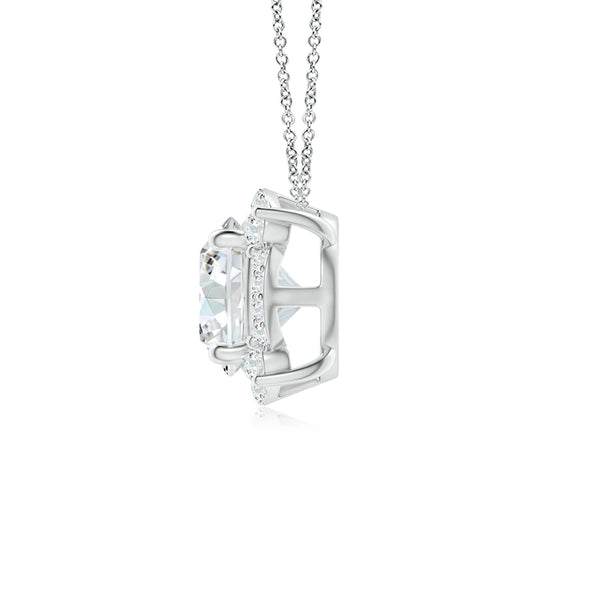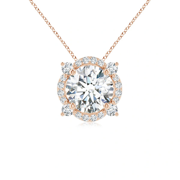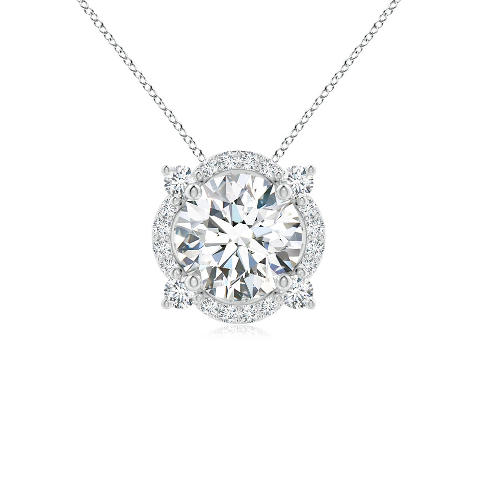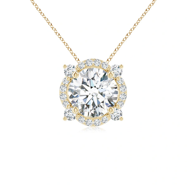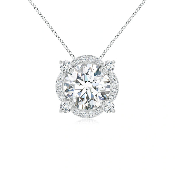 Elevate your elegance with this Lab-Grown Floating Round Diamond Quatrefoil Halo Pendant. Expertly crafted, it features a brilliant round lab-grown diamond suspended within a delicate quatrefoil halo, creating a captivating floating effect. This pendant combines sustainable luxury with timeless design, offering exceptional sparkle and refined sophistication for any occasion.