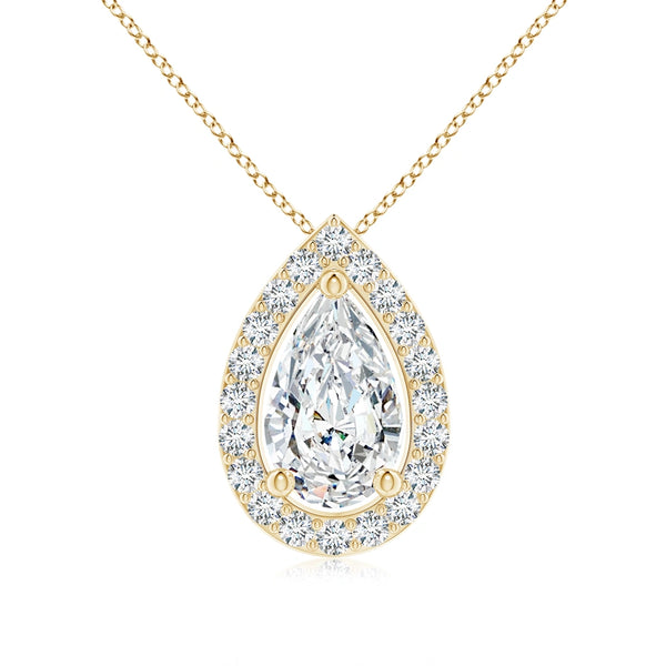 Elevate your collection with this Lab-Grown Pear Diamond Solitaire Floating Halo Pendant, expertly crafted to showcase a stunning pear-shaped diamond at its center. The floating halo design enhances brilliance and adds depth, creating a sophisticated yet modern statement piece. Ethically sourced and sustainably produced, this pendant offers exceptional clarity and sparkle, making it an ideal choice for those who value both beauty and responsibility in fine jewelry. Perfect for everyday elegance or special occasions.