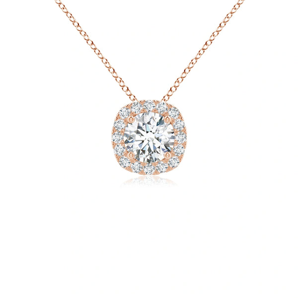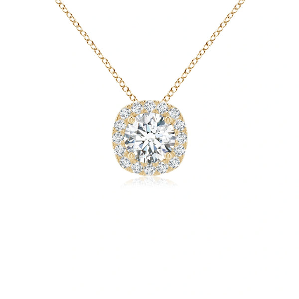 Elevate your elegance with this Lab-Grown Round Diamond Cushion Halo Pendant, expertly crafted to showcase sustainable luxury. Featuring a brilliant round lab-grown diamond at its center, surrounded by a cushion-shaped halo of smaller diamonds, this pendant offers exceptional sparkle and refined sophistication. Ideal for those who value ethical sourcing without compromising on brilliance, it adds a timeless statement to any jewelry collection.