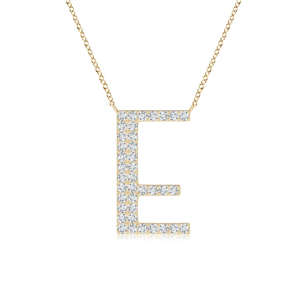 Elevate your style with this Lab-Grown Modern Deco Diamond Capital "E" Initial Pendant. Crafted with precision, the pendant features a sleek Art Deco design set with ethically sourced lab-grown diamonds, offering brilliance and sustainability. Perfect for personalizing your jewelry collection or gifting, it combines contemporary elegance with responsible craftsmanship.