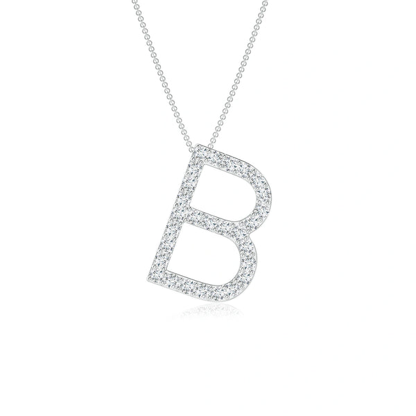 This Lab-Grown Prong-Set Diamond Capital "B" Initial Pendant features a precisely crafted capital letter "B" adorned with ethically sourced, lab-grown diamonds set securely in prongs. The pendant combines sustainable luxury with timeless design, offering a brilliant sparkle that enhances any outfit. Ideal for those seeking a personalized yet environmentally conscious accessory, it delivers both elegance and responsible craftsmanship.