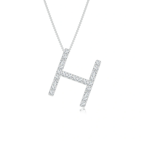 This Lab-Grown Prong-Set Diamond Capital "H" Initial Pendant combines sustainable craftsmanship with refined elegance. Featuring a precisely cut capital "H" adorned with ethically sourced lab-grown diamonds securely set in prongs, this pendant offers lasting brilliance and durability. Ideal for those seeking a personalized yet environmentally conscious accessory, it enhances any outfit with subtle sophistication and expert design.