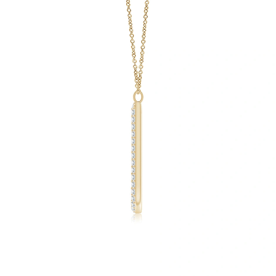 This Lab-Grown Prong-Set Diamond Capital "J" Knife-Edge Initial Pendant combines precision craftsmanship with sustainable luxury. Featuring a knife-edge design, the pendant showcases a capital "J" adorned with ethically sourced lab-grown diamonds set securely in prongs. Its refined silhouette offers a modern yet timeless appeal, making it an elegant personal statement or a meaningful gift. Crafted to highlight brilliance and durability, this pendant balances style with responsible sourcing for discerning jewelry enthusiasts.