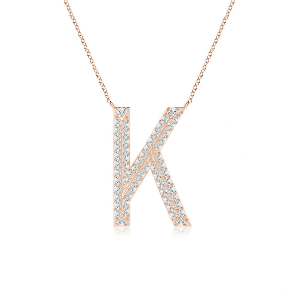 This Lab-Grown Prong-Set Diamond Capital "K" Knife-Edge Initial Pendant combines precision craftsmanship with sustainable luxury. Featuring a meticulously prong-set lab-grown diamond, the pendant showcases the letter "K" with a sharp knife-edge design that enhances its modern elegance. Ideal for personalized gifting or everyday wear, this pendant offers a brilliant sparkle while supporting ethical jewelry choices.