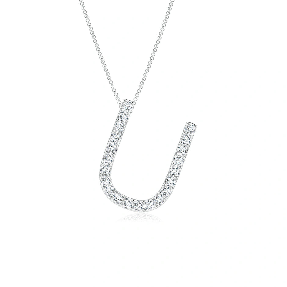 This Lab-Grown Prong-Set Diamond Capital "U" Initial Pendant features ethically sourced diamonds expertly set to highlight the letter's elegant design. Crafted with precision, it offers a sustainable alternative to mined diamonds without compromising brilliance or quality. Ideal for personalized gifting or adding a refined touch to your jewelry collection, this pendant combines modern craftsmanship with timeless style.