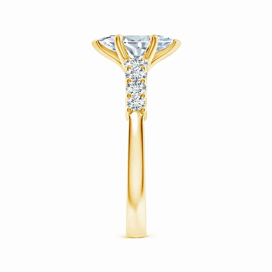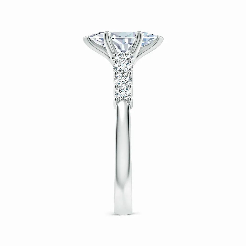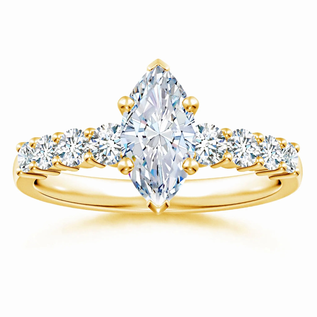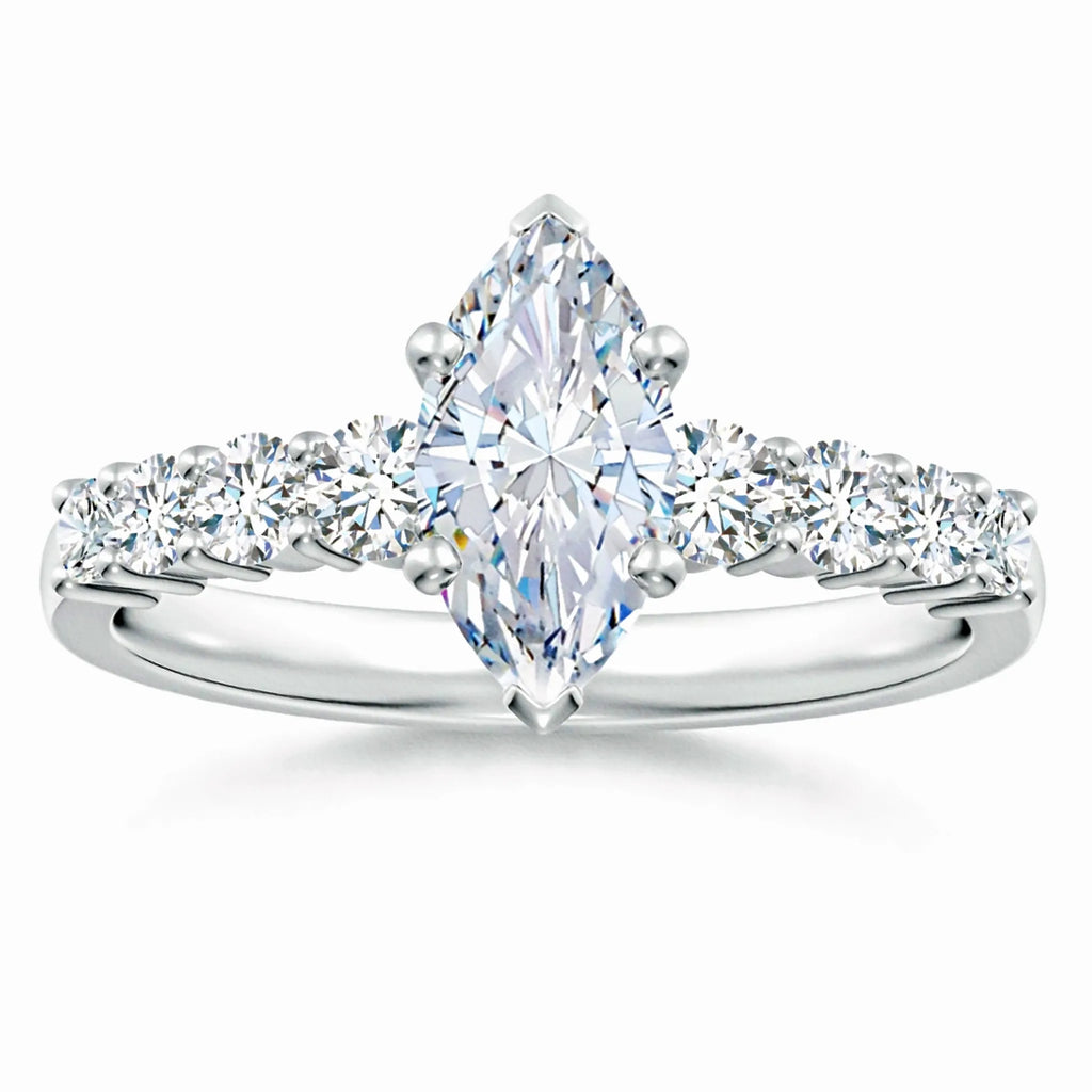This Lab-Grown Solitaire Marquise Diamond Graduated Engagement Ring features a stunning marquise-cut diamond crafted in a sustainable lab environment. The graduated design enhances the stone’s brilliance and elegance, offering a refined and timeless symbol of commitment. Expertly set to maximize sparkle, this ring combines ethical sourcing with sophisticated craftsmanship, making it an exceptional choice for discerning couples seeking both beauty and responsibility.