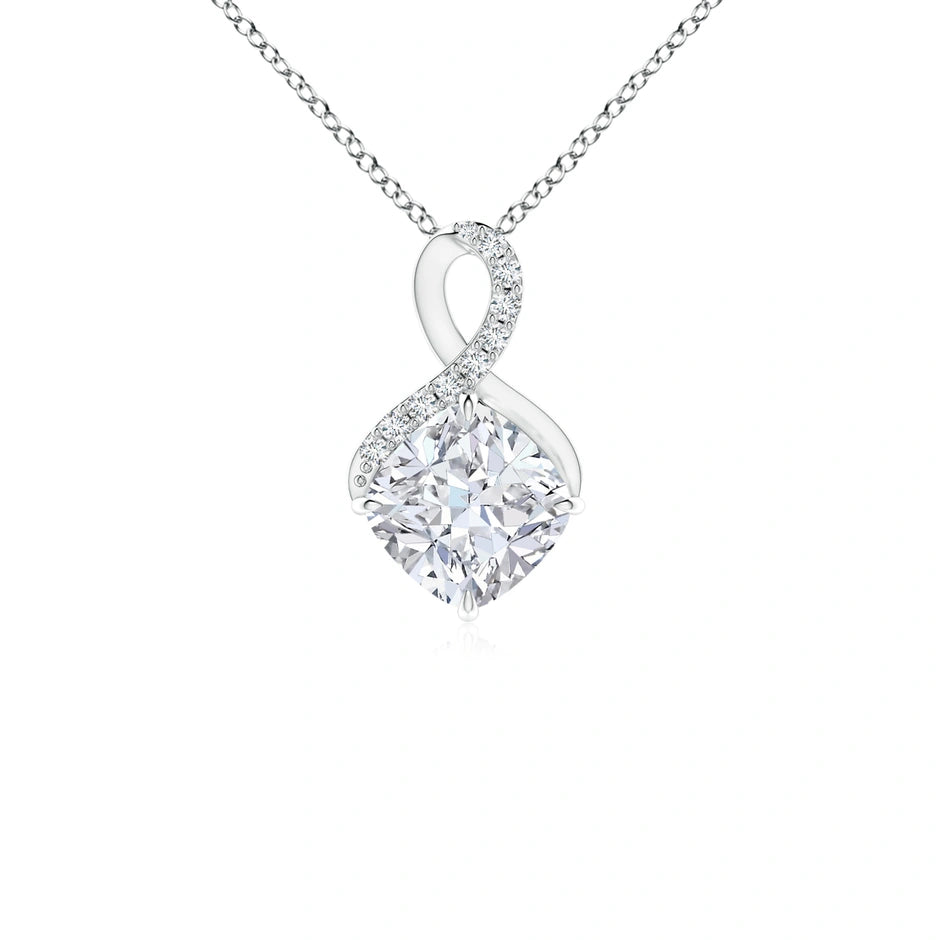 This Lab-Grown Claw-Set Diamond Infinity Pendant features expertly crafted lab-grown diamonds set securely in a claw setting, enhancing their brilliance and durability. The infinity design symbolizes timeless elegance, while the additional lab diamond accents add subtle sparkle. Ideal for those seeking sustainable luxury, this pendant combines ethical sourcing with refined craftsmanship for a sophisticated statement piece.