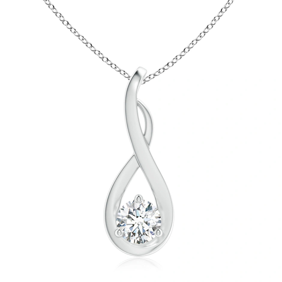 Elevate your elegance with the Lab-Grown Infinity Twist Diamond Solitaire Pendant. Crafted with precision, this pendant features a brilliant lab-grown diamond set within a sleek infinity twist design, symbolizing timeless beauty and endless sophistication. Its sustainable origin ensures ethical luxury without compromising on sparkle or clarity, making it a refined choice for discerning jewelry enthusiasts. Perfect for both everyday wear and special occasions, this pendant adds a subtle yet striking statement to any ensemble.