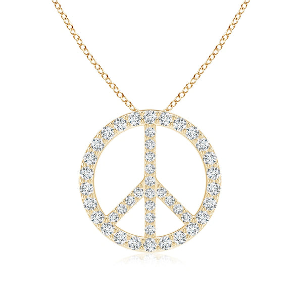 This Lab-Grown Prong-Set Diamond Peace Sign Pendant combines ethical craftsmanship with timeless symbolism. Featuring precisely prong-set lab-grown diamonds, it offers brilliant sparkle while supporting sustainable practices. The pendant’s iconic peace sign design makes it a meaningful accessory, perfect for those who value both style and conscious luxury. Expertly crafted to ensure durability and elegance, this piece complements any outfit with a subtle yet powerful statement.