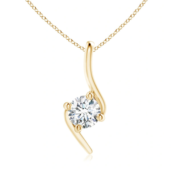 This Lab-Grown Prong-Set Diamond Solitaire Bypass Pendant features a precisely crafted bypass design that elegantly showcases a single, ethically sourced lab-grown diamond. The prong setting maximizes light exposure, enhancing the diamond’s brilliance and fire. Ideal for those seeking a sophisticated and sustainable choice, this pendant combines expert craftsmanship with modern ethical standards, making it a timeless addition to any fine jewelry collection.