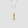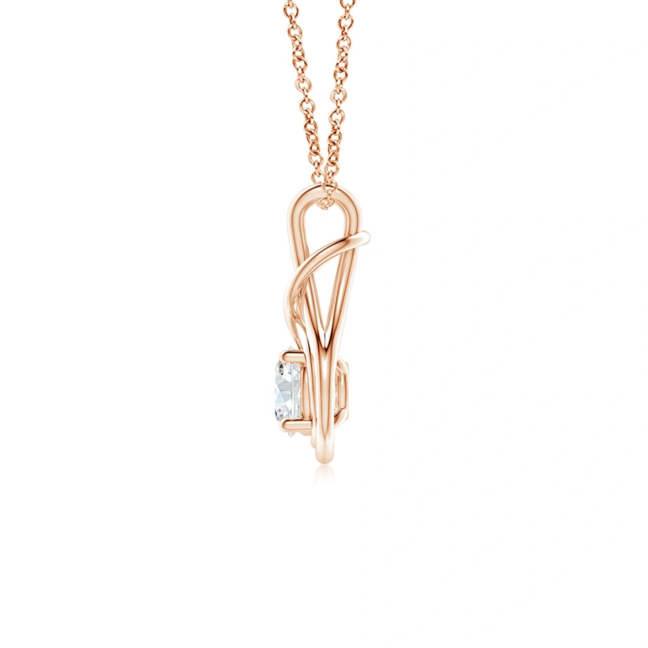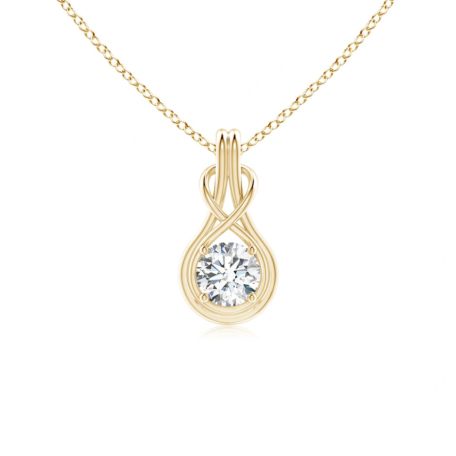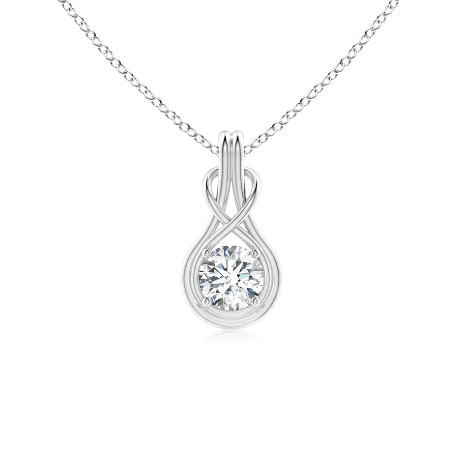 This Lab-Grown Round Diamond Solitaire Infinity Knot Pendant features a brilliant round diamond crafted in a sustainable lab environment, ensuring exceptional clarity and ethical sourcing. The infinity knot design symbolizes eternal love and connection, making it a meaningful and timeless piece. Expertly set to maximize sparkle, this pendant combines modern craftsmanship with classic elegance, perfect for those seeking both beauty and responsibility in fine jewelry.