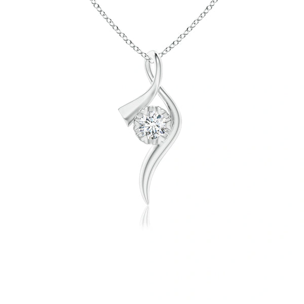 Elevate your elegance with this Lab-Grown Solitaire Diamond Ribbon Pendant, expertly crafted to showcase a brilliant, ethically sourced diamond. The sleek ribbon design offers a modern yet timeless appeal, making it a versatile piece for both everyday wear and special occasions. This pendant combines sustainable luxury with exceptional craftsmanship, ensuring a radiant sparkle that reflects your refined taste.
