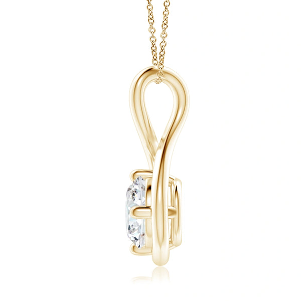 Elevate your collection with this Lab-Grown Solitaire Diamond Twist Bale Pendant, expertly crafted to showcase a brilliant, ethically sourced diamond. The elegant twist bale design adds a modern touch, ensuring the pendant sits gracefully on any chain. Perfect for those who value sustainability without compromising on timeless sophistication.