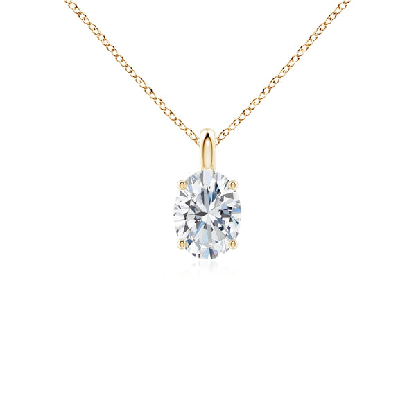 Elevate your elegance with this Lab-Grown Solitaire Oval Diamond Classic Pendant. Expertly crafted, it features a brilliant oval-cut diamond that offers exceptional clarity and sparkle, embodying sustainable luxury. Perfectly set to highlight its timeless design, this pendant adds refined sophistication to any ensemble while supporting ethical jewelry choices.