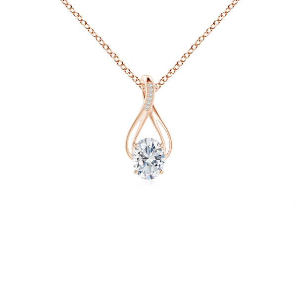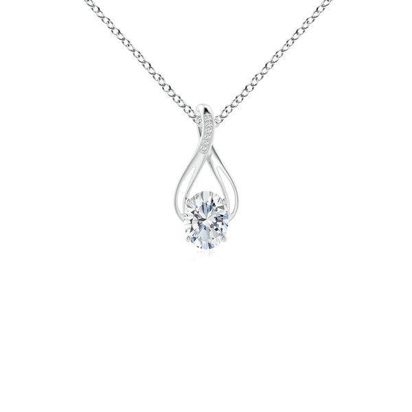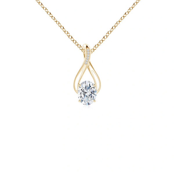 Elevate your jewelry collection with this Oval Lab-Grown Diamond Infinity Twist Pendant. Expertly crafted, it features a stunning oval-shaped lab-grown diamond set within an elegant infinity twist design, accented by delicate diamond details. This pendant combines sustainable luxury with timeless symbolism, making it a refined choice for those who appreciate both ethical sourcing and sophisticated style. Perfect for daily wear or special occasions, it adds a subtle yet captivating sparkle to any outfit.